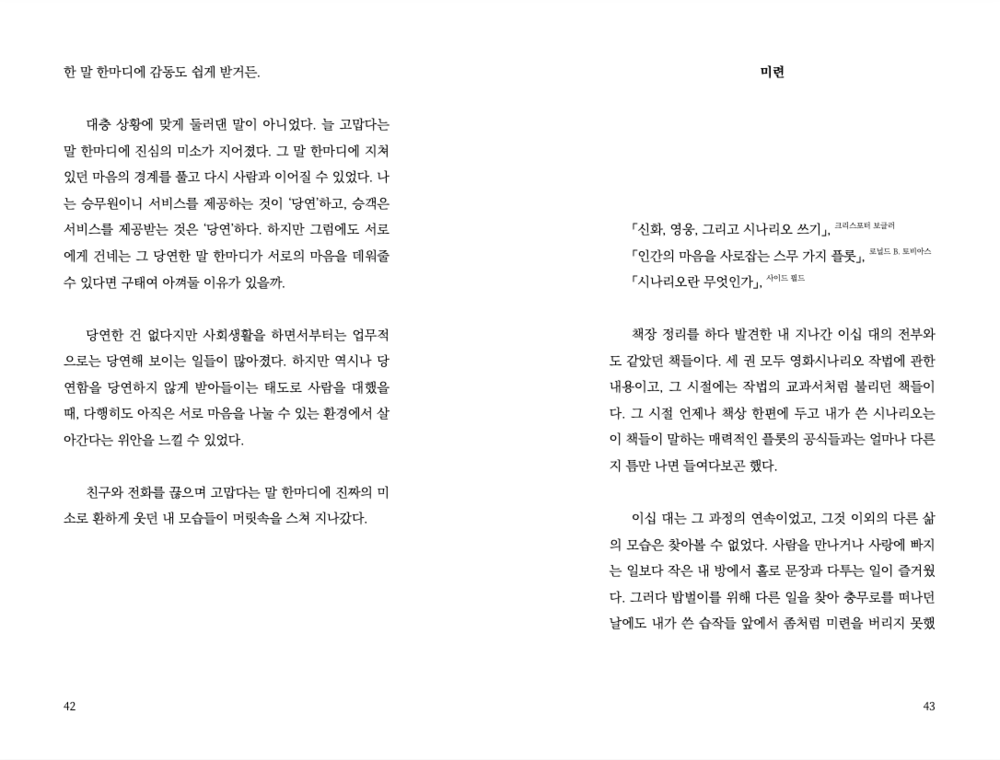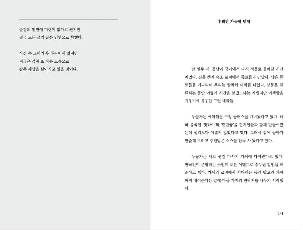 언뜻 보면 다른 두 시절이 이제는 하나의 플롯처럼 이어지길 바라며 글을 쓴다.