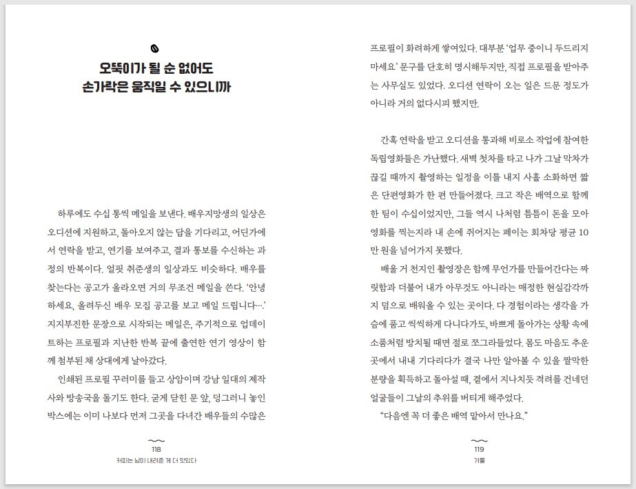 우당탕탕 굴러가는 노동의 현장을 ‘창업기 – 운영기 – 폐업기’로 나누어 담았습니다.