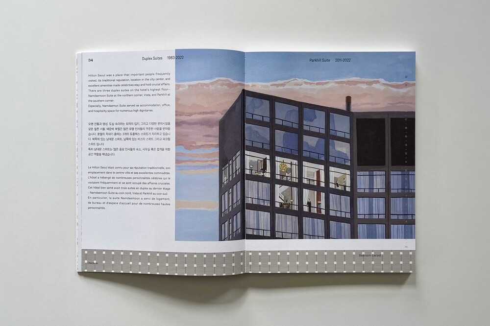 이번 책에서는 1983년 부터 2022년 까지 40년 동안의 영업 끝에 사라진 서울의 기념비적인 호텔을 디자인 스튜디오 그래픽캐뷰러리에서 회화와 그래픽 패턴으로 기록했습니다.