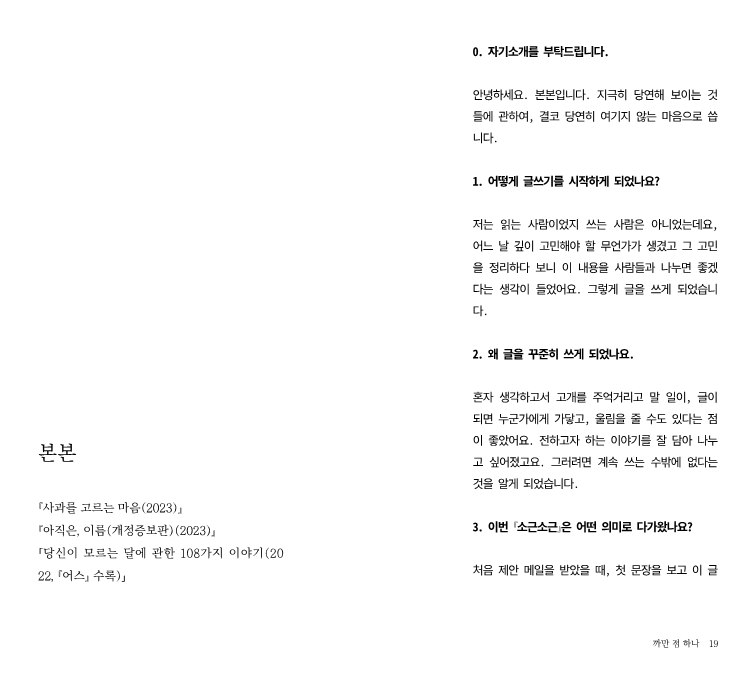 죽음을 향했던 시절과 삶을 향하는 현재가 만나는 경계에는 두 장면을 잇는 모서리가 있다. 무수히 많은 삶의 장면과 미처 아직 보지 못한 장면의 연결점. 그 가운데 자리 잡은 이 모서리에게서 또 다른 면과 면의 경계를 탐구할 용기를 얻는다. 어쩌면 내가 미처 알지 못했던, 내 삶을 지탱하는 연결 고리. 나를 다시 살아가게 하는 생명줄.