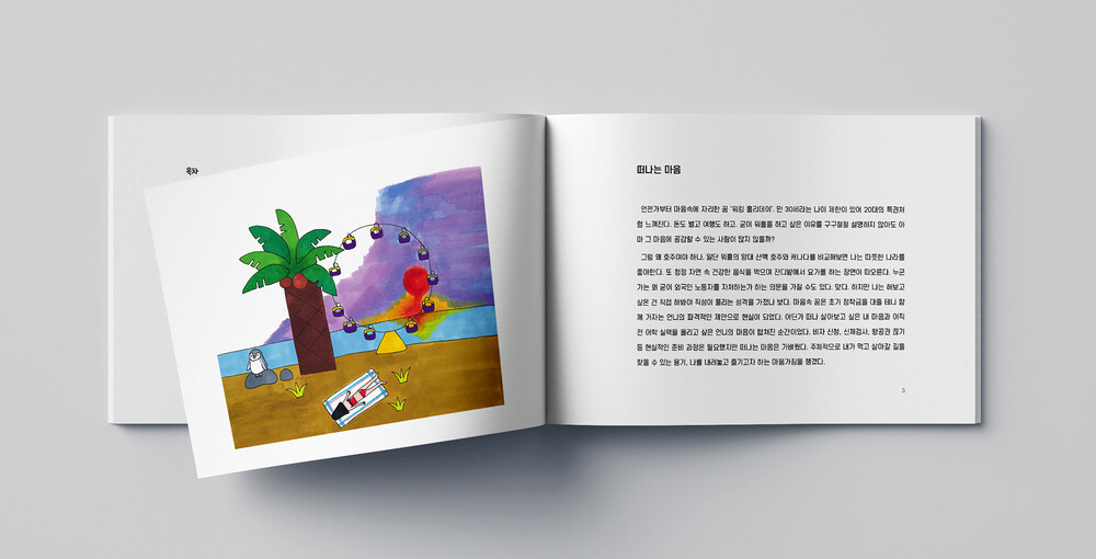 잔디밭에서의 요가, 청정 자연 속에서의 힐링을 꿈꾸며 떠난 호주 워킹홀리데이.실상은 브라이튼 비치에서 아무노래 챌린지를 추고, 채식 레스토랑에서 자원봉사를 하고, 바리스타를 꿈꿨지만, 스시 가게의 일꾼이 되었습니다. 60일이란 짧은 기간이지만, 그곳의 다채로운 기억을 떠올리며 마카 드로잉으로 호주의 순간들을 담았습니다.