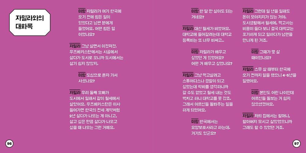 낯선 언어를 가지고 타지에서 온 이주민 분들의 존재를 내 삶에서 알아차리는 일. 그것으로 이 만화를 읽고 알아차려 주시면 좋겠다.