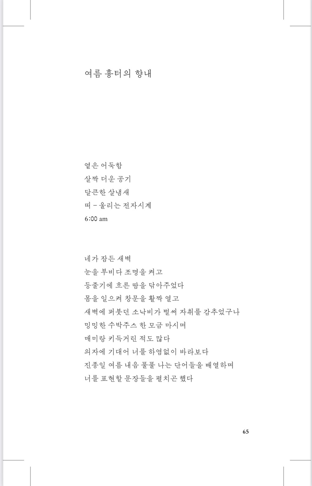 독자분들께 저의 여름을 전달하며 동시에 독자님들의 여름을 돌이켜보는 계기를 마련해 드리고 싶은 저의 마음이 통한다면 더할 나위 없이 행복할 것 같습니다.