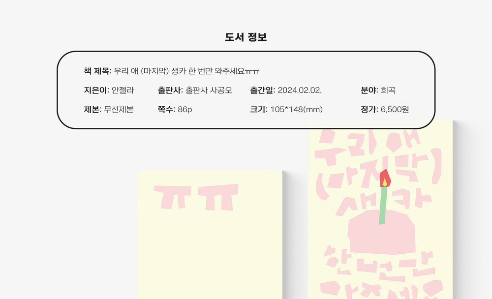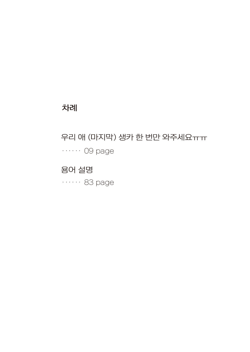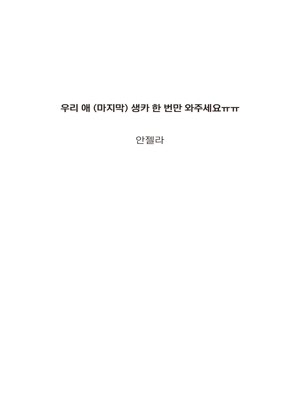 - 책 제목: 우리 애 (마지막) 생카 한 번만 와주세요ㅠㅠ