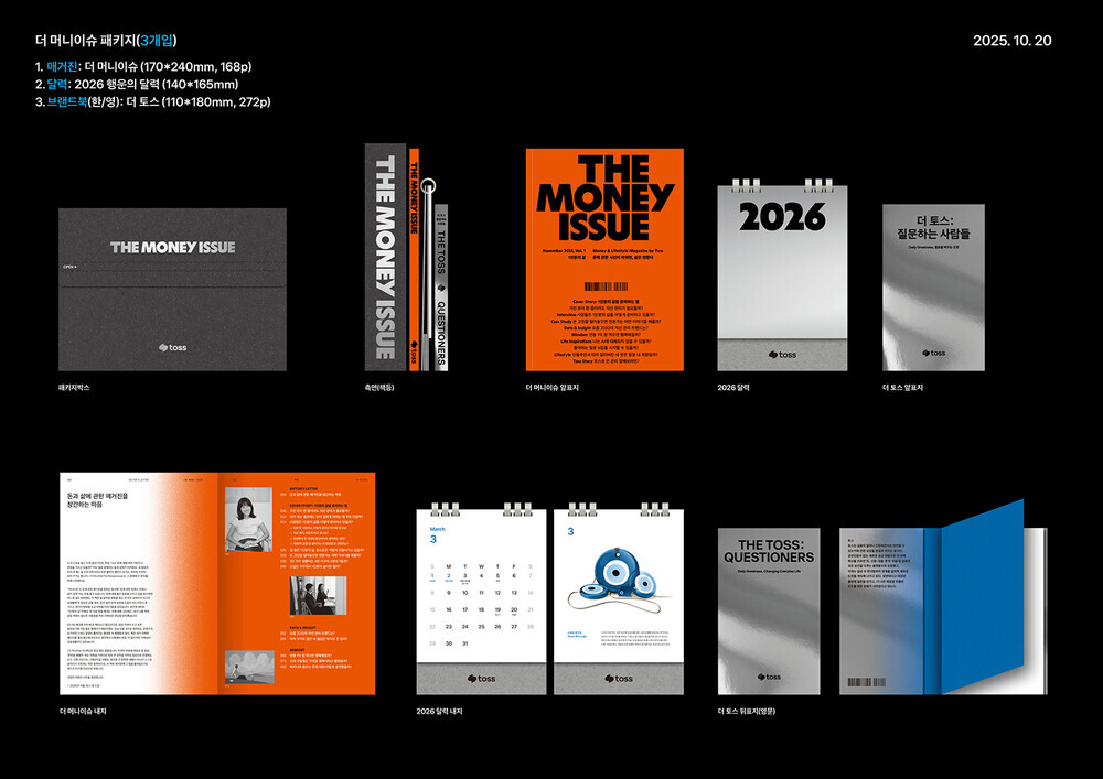 ✱THE MONEY ISSUE(매거진), THE TOSS(브랜드북), 2026 토스 행운의 달력이 담긴 3종 세트 구성입니다.