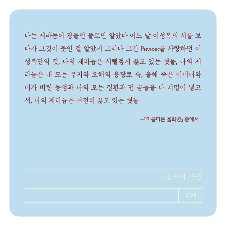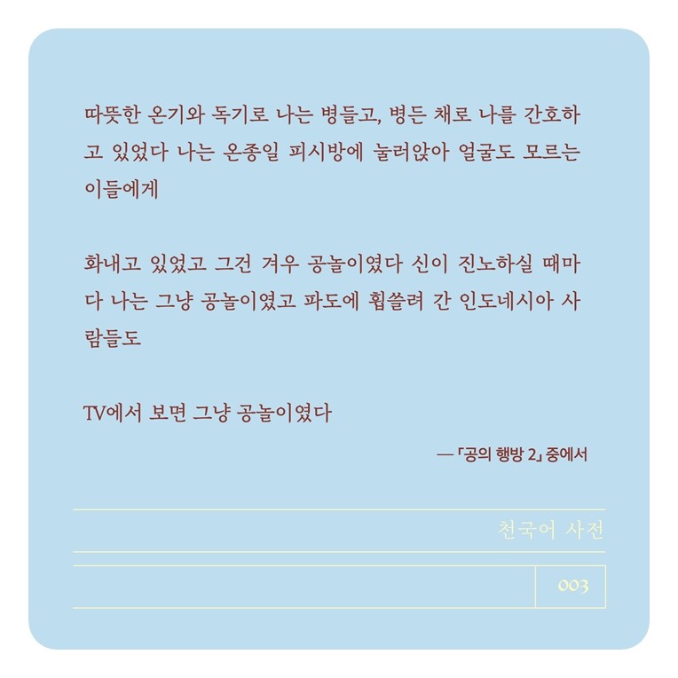 당신의 천국어 사전이 두툼해지면 좋겠다