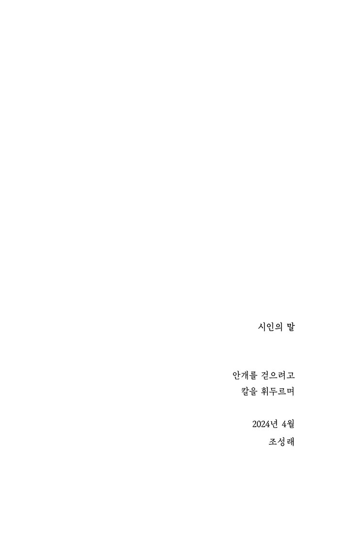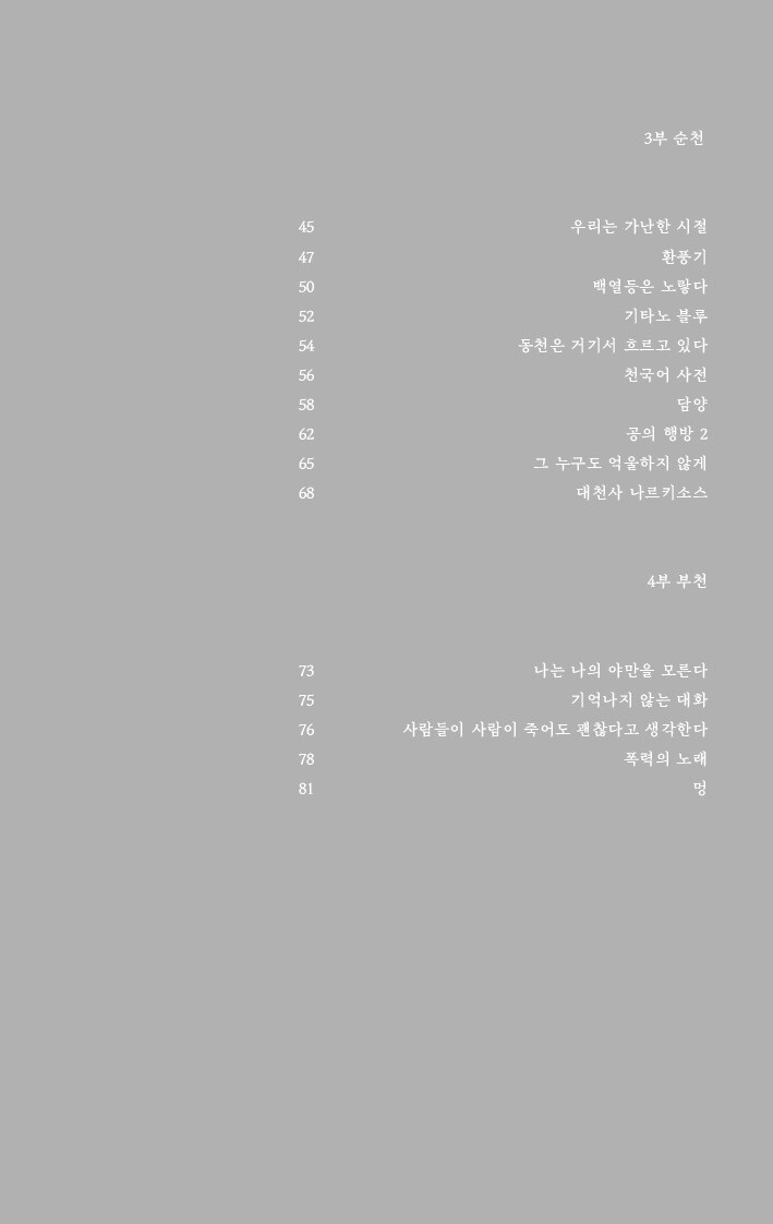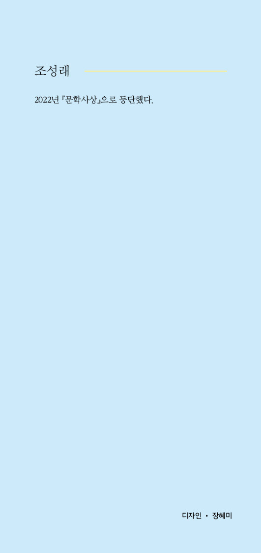 절망도 가끔은 사람의 편을 들어줍니다. 그러니 밀어내거나 견딘다거나 버티겠다는 태도를 가져서는 안 됩니다. 속절없이 곁에 두는 것. 답을 기대하지 않은 채 질문을 던지는 것. 가끔 흐트러지는 절망의 자세를 고쳐 세워 주는 것. 조성래 시인도 이를 잘 알고 있는 듯합니다. 어스름 속에서 한결 깊어지는 그의 눈빛이나 쥐어 보지 못한 시간을 그러모으는 고운 손길을 보면 헤아릴 수 있습니다. 그동안 기울여 왔던 것과 새로 딛고 나아갈 것. 덕분에 그는 시작부터 아름답습니다. ─ 박준(시인)