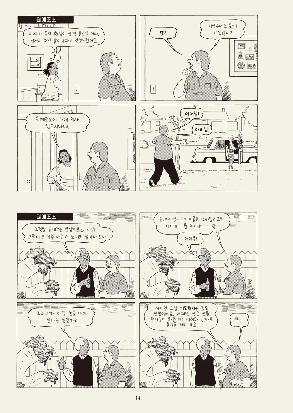 『킬링 앤 다잉(죽여주는, 죽어가는)』은 그래픽노블 매체의 가능성을 보여주는 사례이자 상실, 창조적 야심, 정체성, 가족 역학을 한데 다룬 단편집입니다. 이 작품을 통해 에이드리언 토미네는 현대 만화의 가장 중요한 창작자일 뿐만 아니라 현대 미국문학의 위대한 목소리로, 자신의 입지를 공고히 했습니다. 사랑과 부재의 무게, 가족에 대한 자부심과 실망, 21세기에 살아 있다는 것의 불안과 희망 등 감성과 이성이 한 장면에서 녹아드는(실은 녹아내리는) 독서경험을 당신에게 선사하고자 합니다. 두 자릿수라는 빽빽한 칸을 쓰면서도, 리드미컬한 액션 하나 없이 그야말로 감정의 밀실을 조성하는 『킬링 앤 다잉』. 담긴 이야기마다 칸 구조, 색상 팔레트, 사실도, 속도감을 달리하면서도, 이 모든 서사에서 미묘한 공통점을 발견하게 되는 것은, 결국 칸과 칸을 연결하고 그 사이 홈통을 채우는 독자의 성의 있는 운동 덕분일 것입니다. 다만 우리 독자로 하여금 묻어두었던 기억 속 사건과 인간을 소환해내게 만드는 토미네의 주문은 역시 경이롭도록 강력합니다. 느슨하게 연결된 여섯 개의 단편만화에서 당신은 주로 어둠을, 그러나 그것 덕분에 더욱 선명하고 귀하게 느껴지는 빛을 감지하게 될 것입니다.