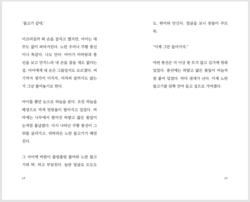 이곳 에서 또렷한 것은 목소리 뿐이라, 모든 말의 무게가 똑같이 느껴졌다.
