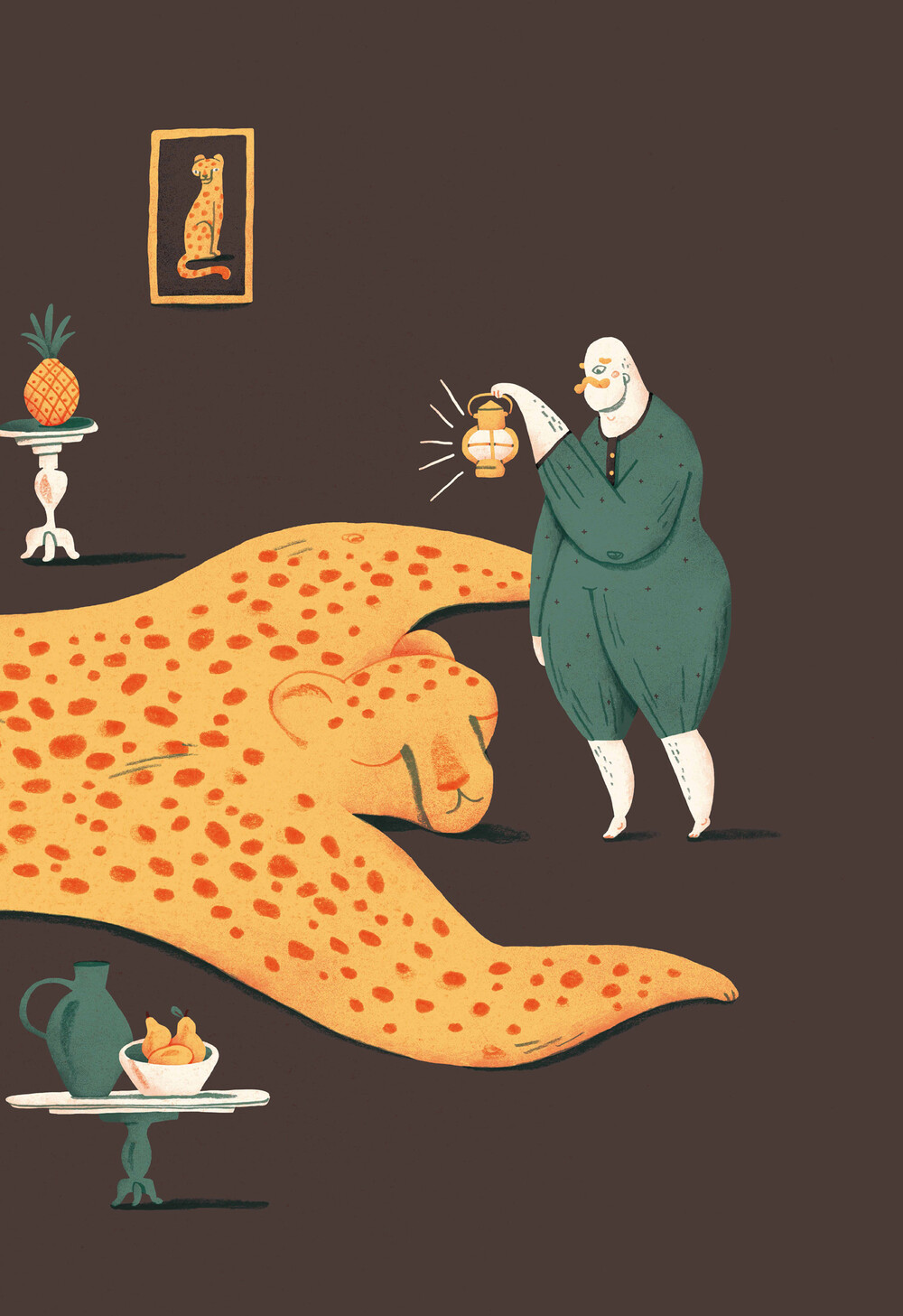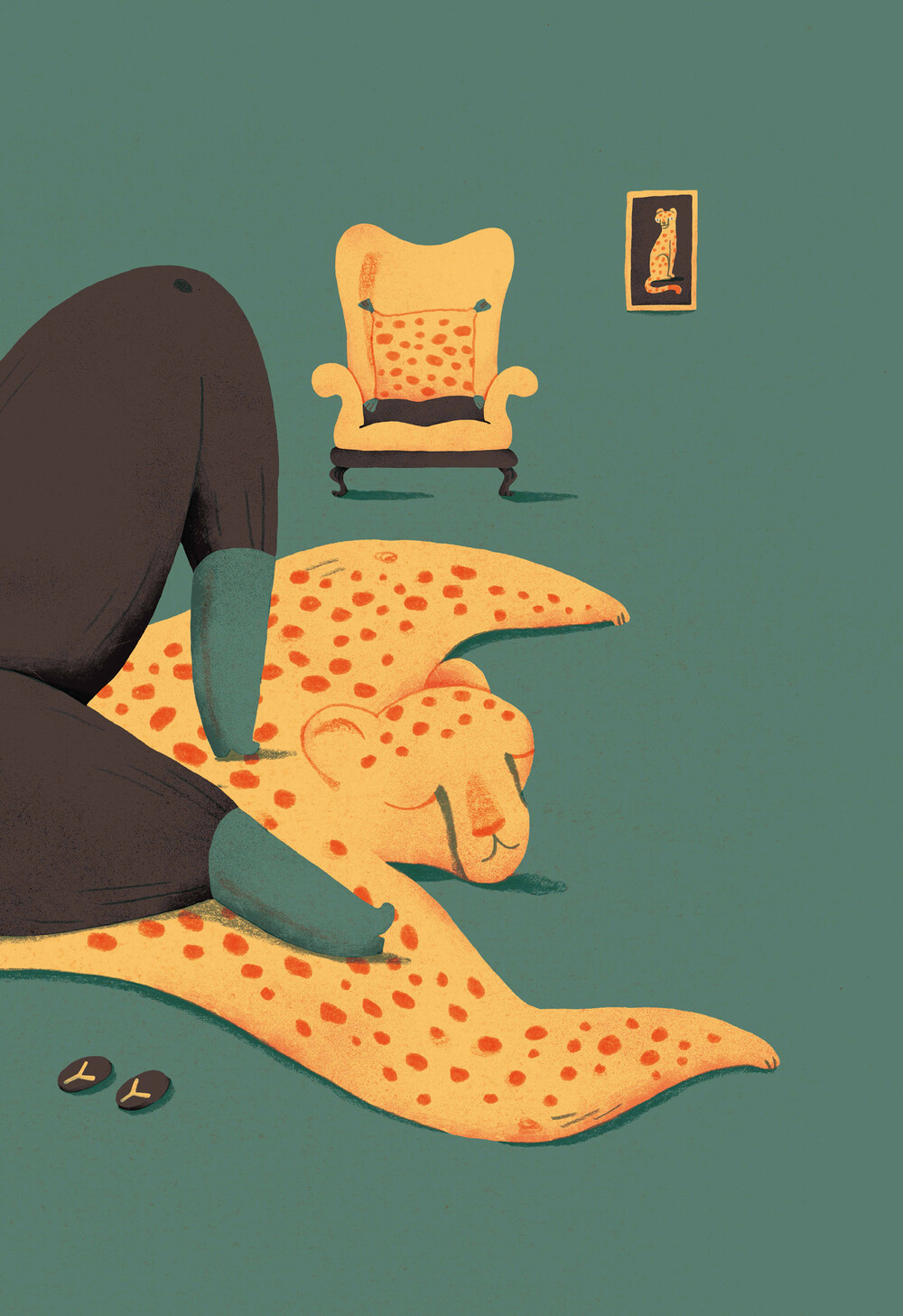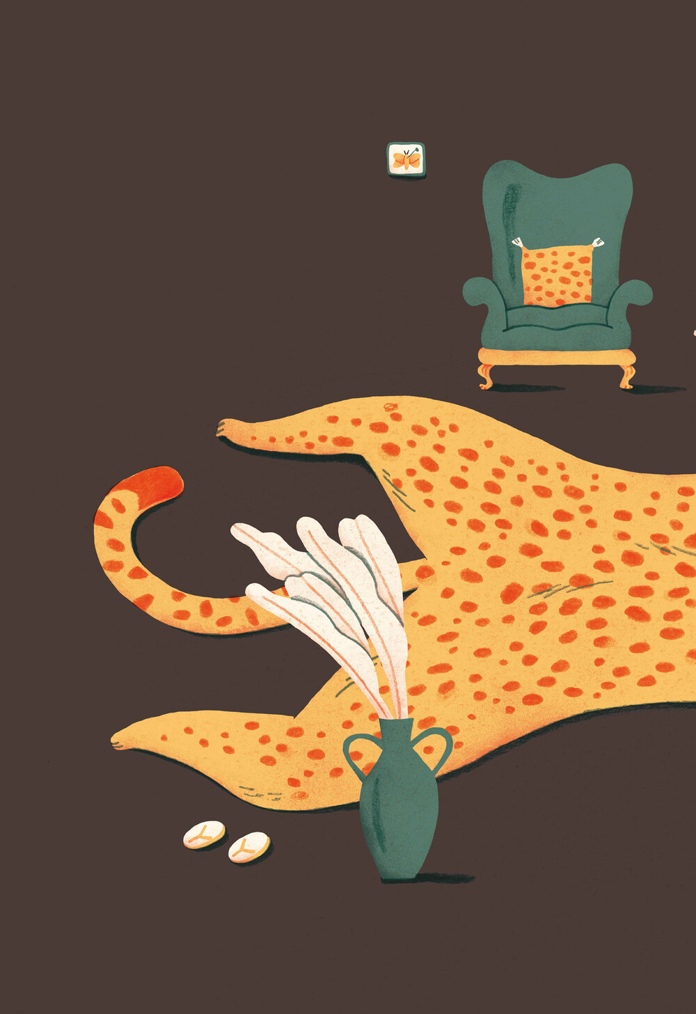벽에는 치타 그림이 걸려 있고, 쿠션 역시 치타무늬다.