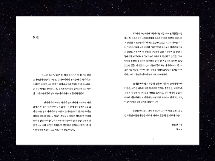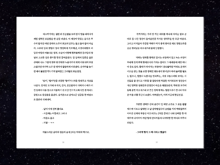 - 패키지: B6 128x182 (mm), 172쪽 / 1도 흑백 (내지) + 4도 칼라 (표지)