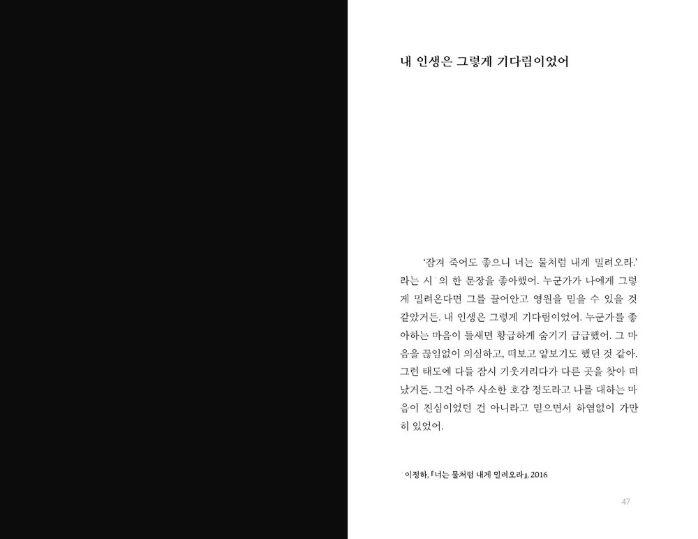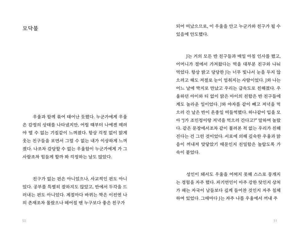 서로에 의해 깊숙한 우울과 맑음이 꺼내져 맞닿았기 때문인지 친밀함은 놀랍도록 가속이 붙었다.