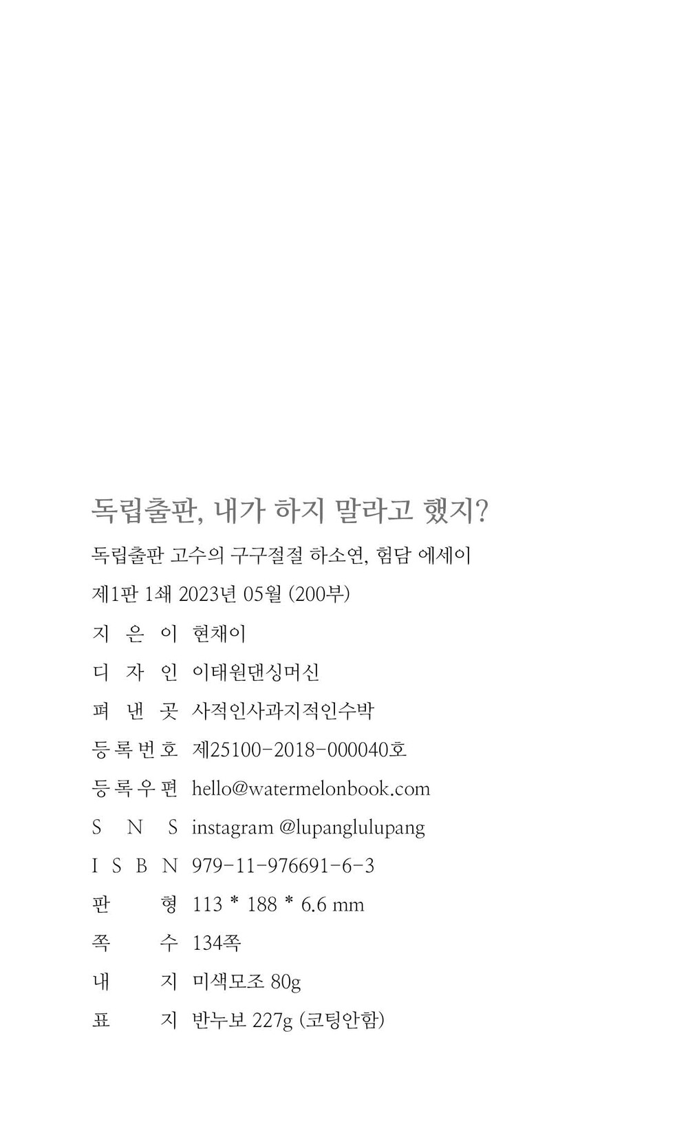 한 단어로 정리하자면 하소연이다. 독립출판에 대한 험담 에세이다.