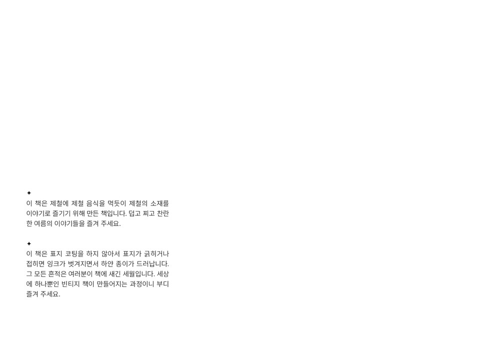 소중한 시간을 함께한 여름을 그냥 흘려 보내지 마세요. 이 책과 함께, 오래도록 기억해 주세요.