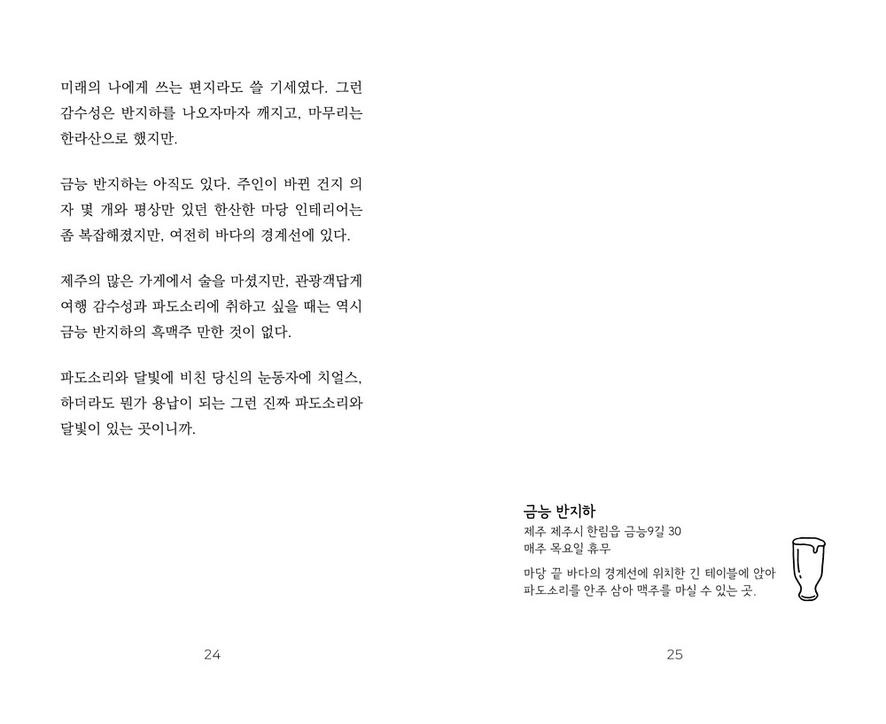 제주에서 만난 수많은 사람들과 , 술과 , 장소에 대한 이야기들을 가게 정보와 함께 담았다.