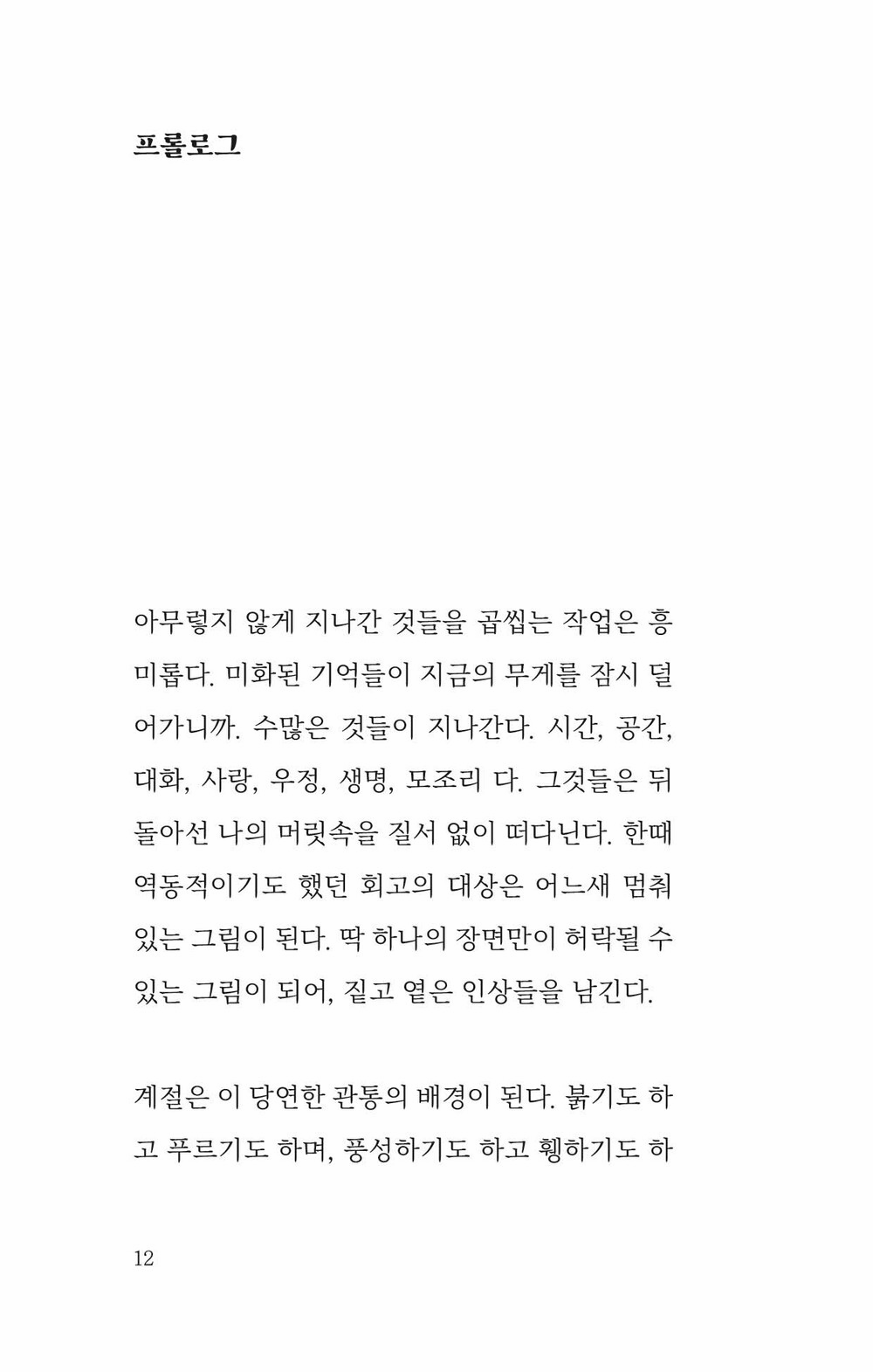 각 계절을 살아가는 동안, 혼자 관찰하고 생각했던 순간이나 주변 인물들과 함께 겪었던 이야기들을