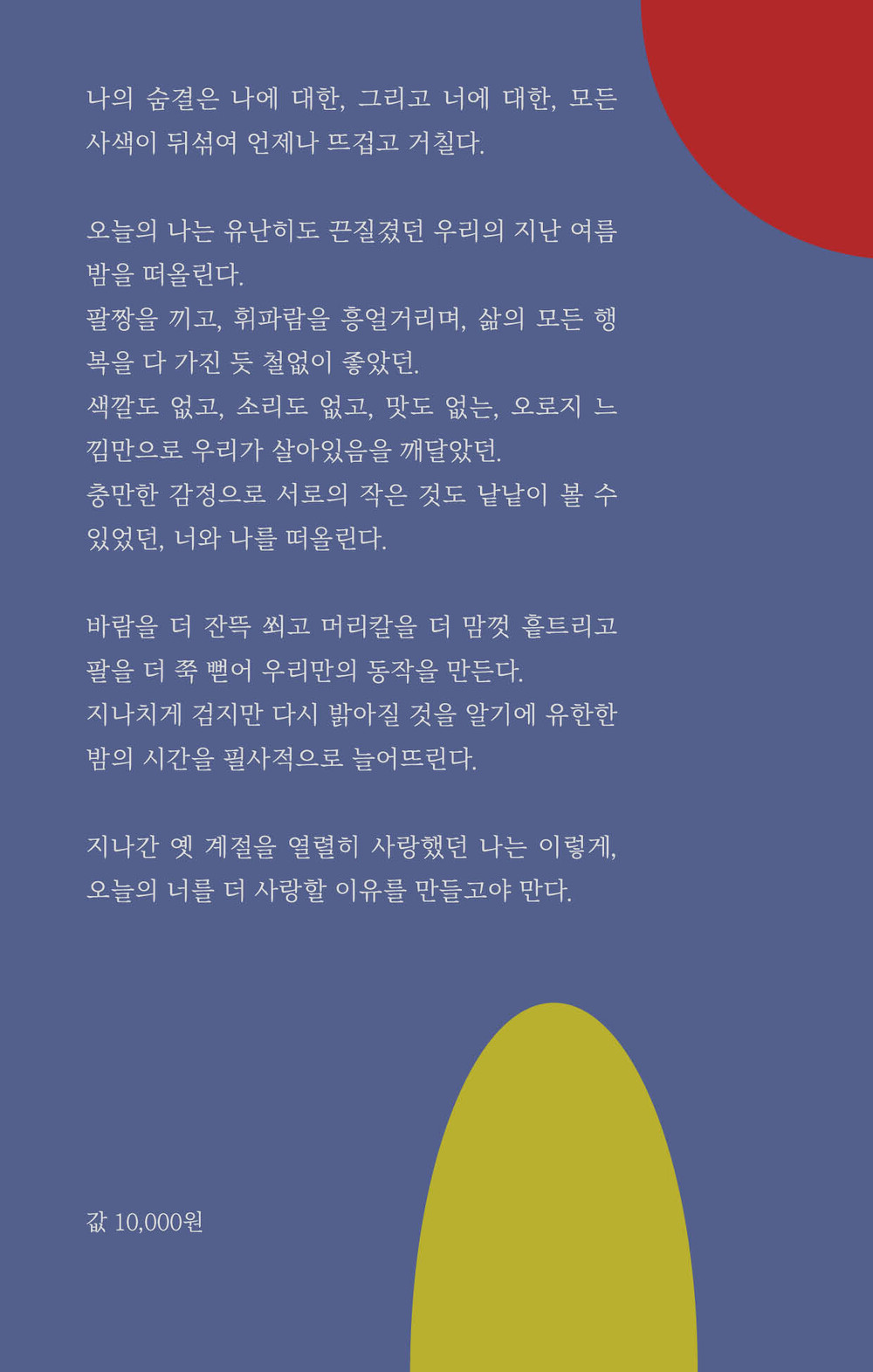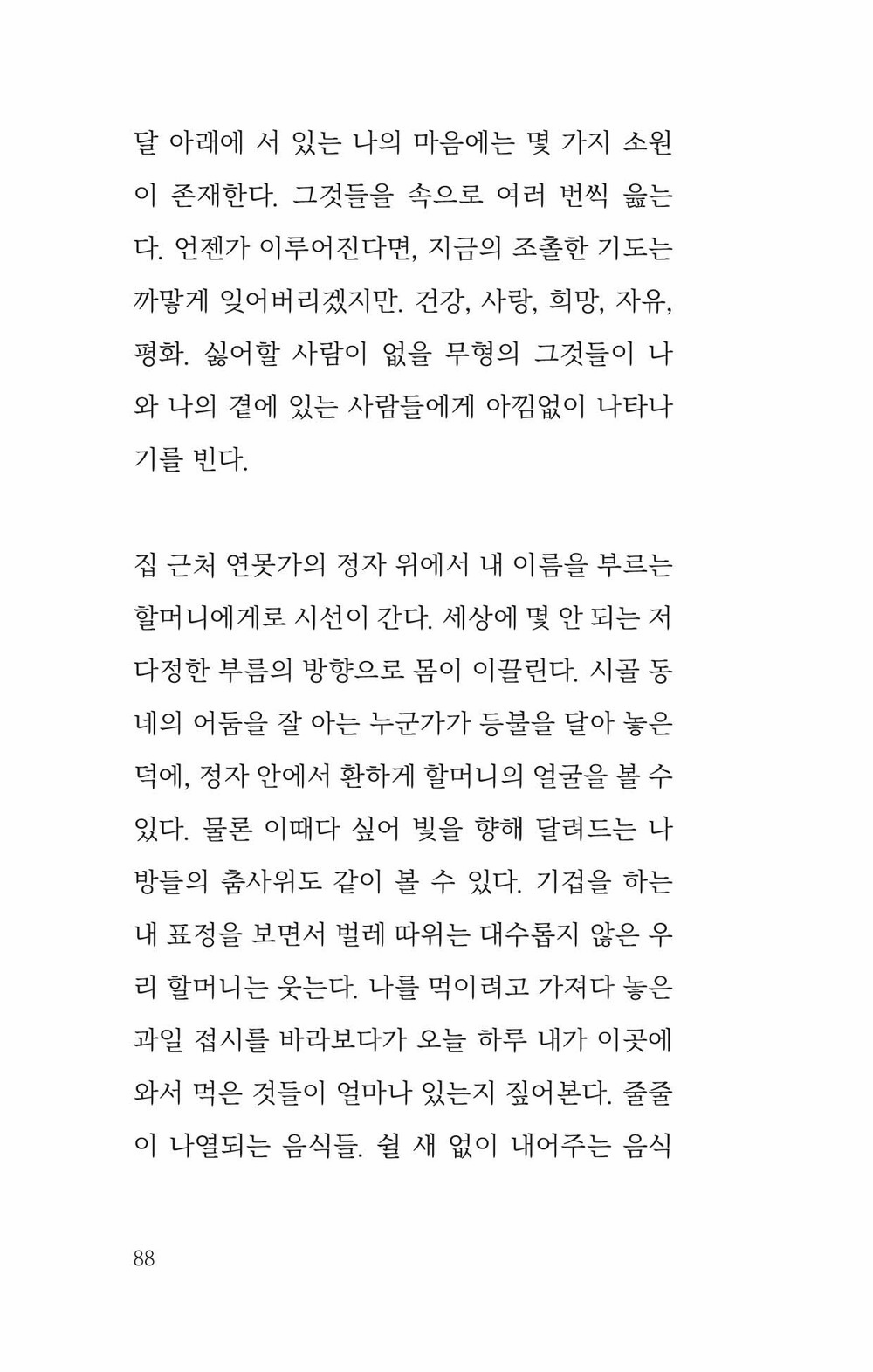 그 속에서 느낀 기쁨, 슬픔, 사랑, 외로움, 평화, 불안 등의 보편적인 감정을 작가만의 단어와 문장들로