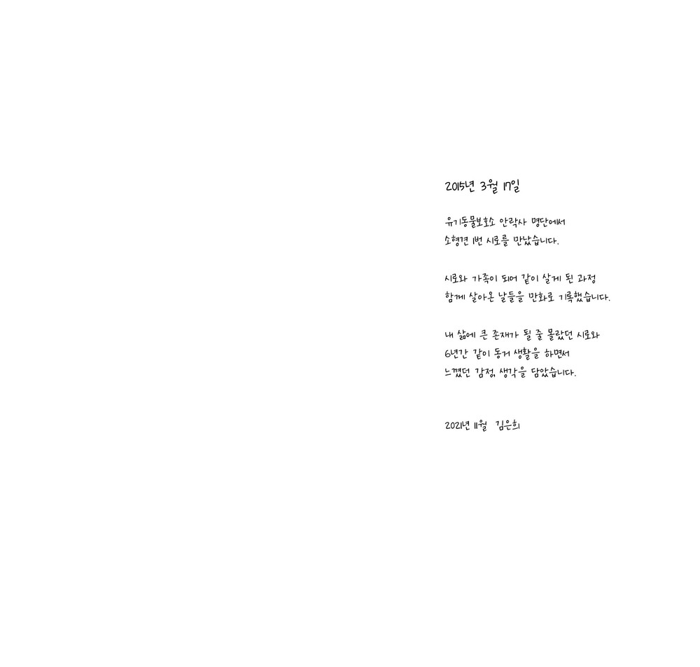 나보다 빠른 시간을 살고 있는 동거견의 따뜻함을 잊어버리지 않기 위해 기록했습니다.