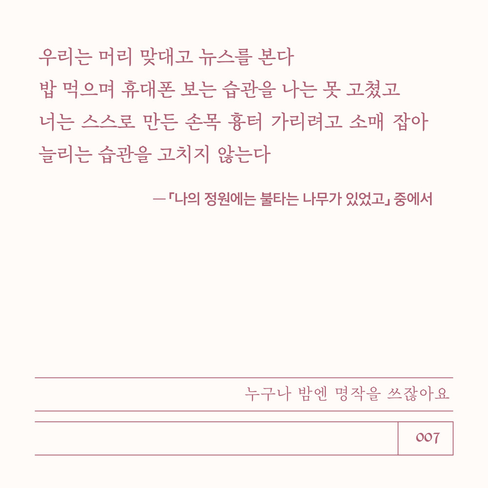 습관을 고치지 않는다 -「나의 정원에는 불타는 나무가 있었고」 중에서