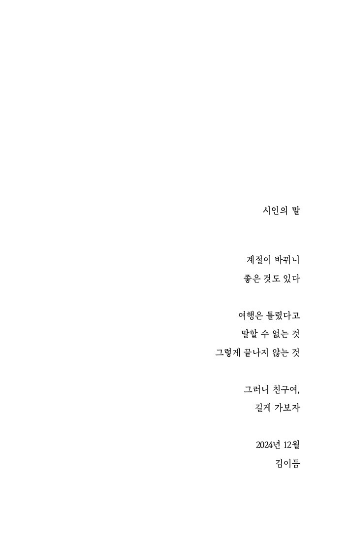 더는 안전하지도 아름답지도 않은, 순식간에 얼어붙은 길목 앞에 시인은 서 있다. 그는 한때 길 안쪽에 머물렀고, 그 안에서 오래전 길 바깥으로 사라져 버린 이를 떠올리기도 했으며, 엽서를 받거나 보내는 사이 자신이 서 있는 깊고 뾰족한 길목에 대해, 동시에 너무 뜨겁거나 너무 차가워 세상과 엇물리는 자신의 몸에 대해 질문했을 것이다. 이윽고 그는 혼자 떠나기로 결심한다. 영원이 되어 버린 아름다운 ‘잠시’를 위해, ‘한순간 빛났던 한 구절’을 위해, 까마득히 멀고 위험한 ‘일방통행로’를 향해. 이 고독은 언제든 익숙해지지 않고, 그래서 걷다가도 자꾸만 휘청이고 허둥대지만, 김이듬은 끝내 살아 있는 사랑을 만난 이들을 위한 설계도를 남겼다. 비록 지금 흐릿하고 얼어붙고 더러워졌다 할지라도, 진짜 사랑으로 영원을 사는 이들을 위한, 용감하게 상처받은 이들만이 도달할 수 있는 ‘혼자 가는/ 미로들’을.