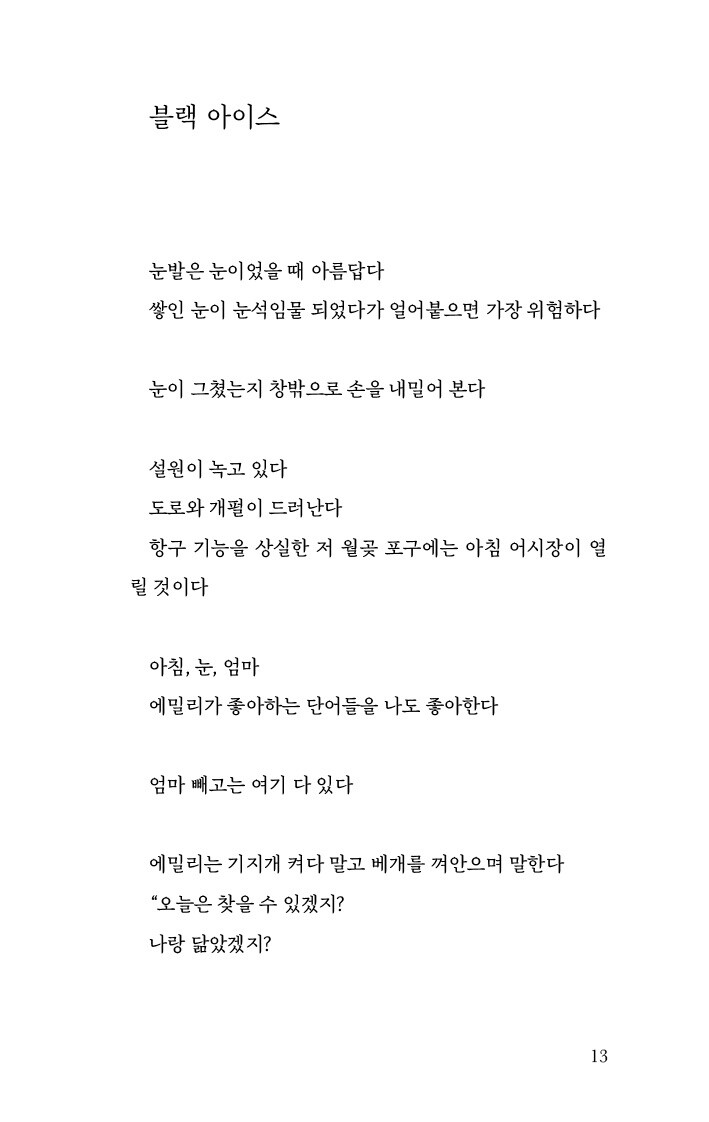 희고 부드러운 눈발 같았다가 녹으면서 성질이 변한다 -「블랙 아이스」 중에서