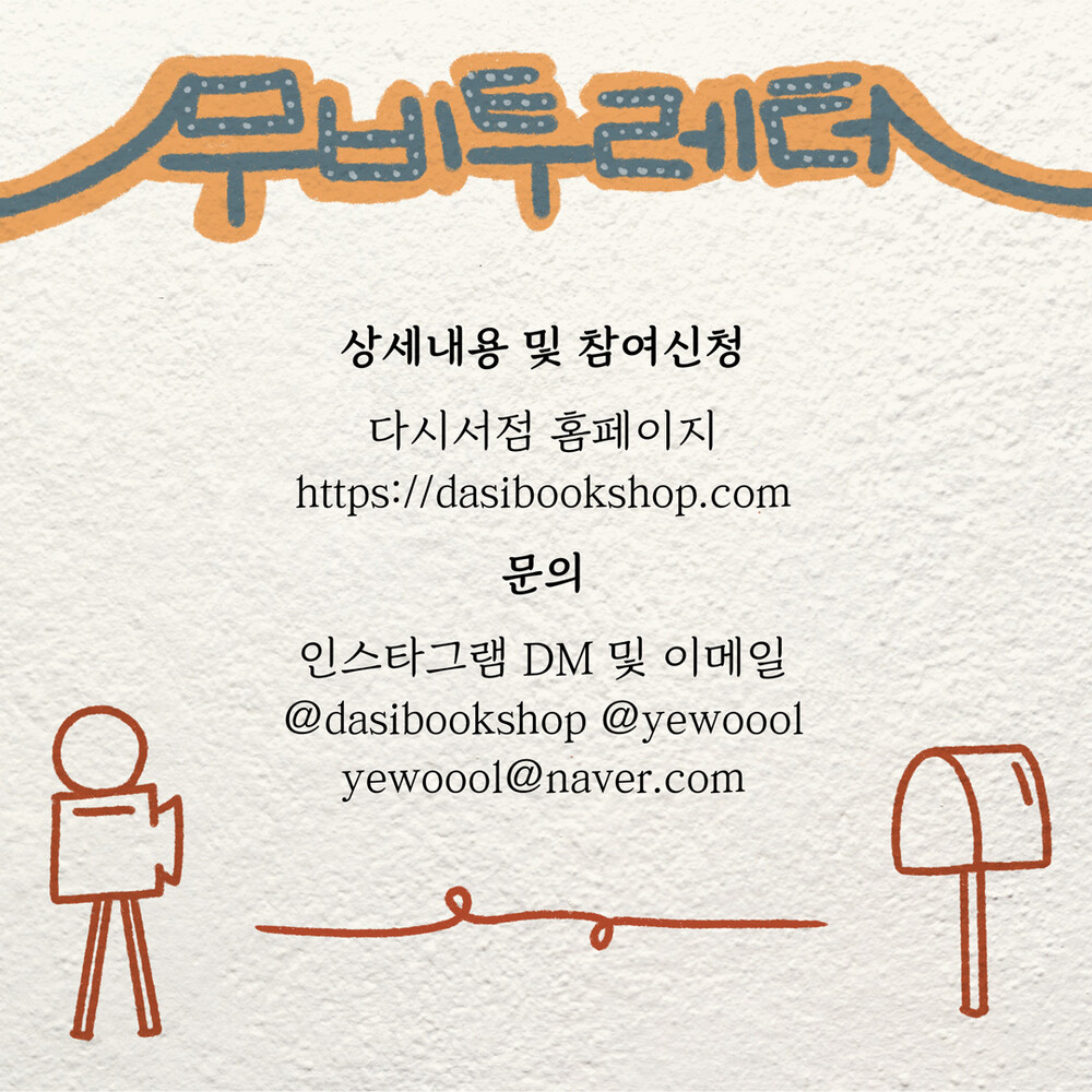 아주 조용한 영화 감상 모임으로,함께 영화를 감상한 후 떠오르는 사람에게 편지를 써 보내는 모임입니다.영화의 등장인물, 친구, 연인, 본인 등 받는 사람은 누구든 상관없습니다.각자 쓴 편지는 8월, 12월에 원하는 주소로 보내드립니다.