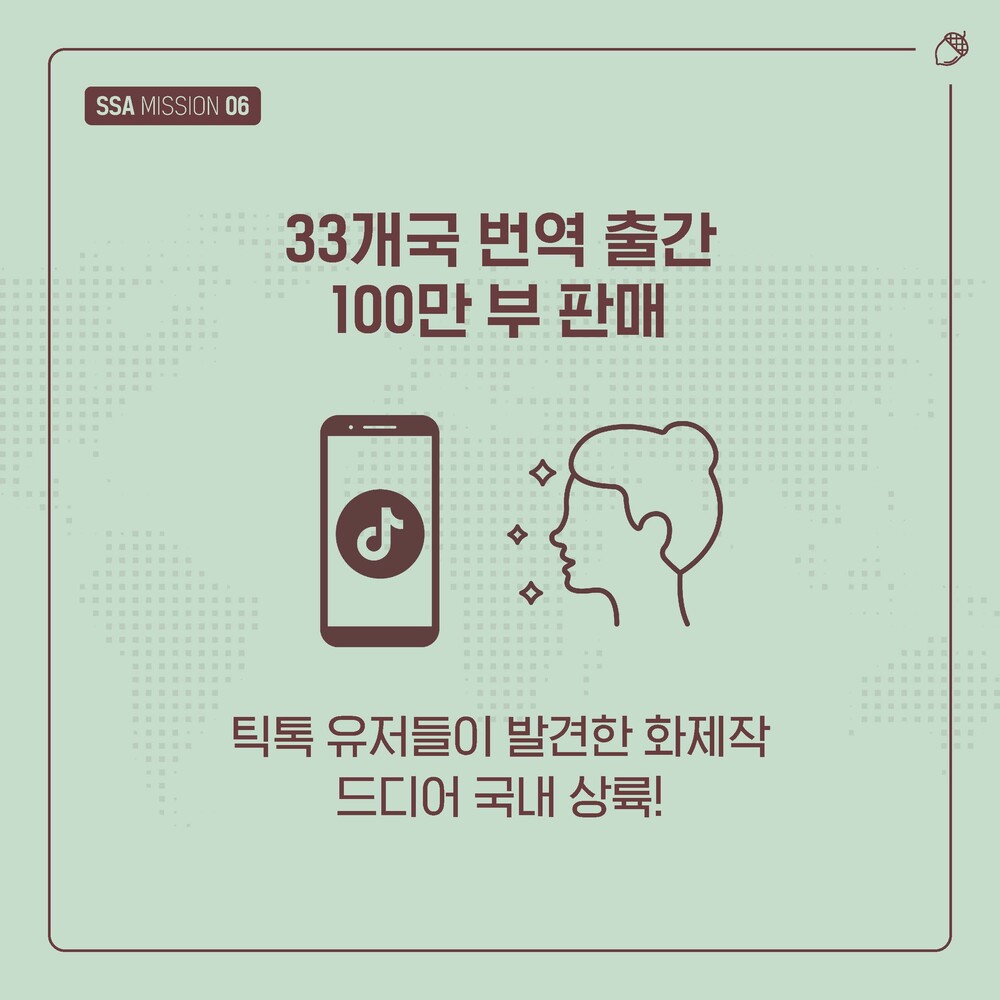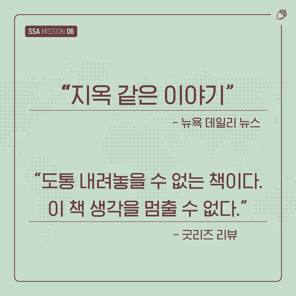 SSA 6기 도서는 출간된 지 5년 만에 틱톡에서 #booktok 해시태그로 인기를 끌면서 역주행 베스트셀러에 오른 외국 소설입니다. 이 책을 먼저 읽은 해외 독자들은 이른바 ‘눈물 영상’으로 생생한 감상을 남겨주었는데요, 손에서 떼어놓을 수 없는 책, 자러 가려다가도 다시 일어나 읽게 되는 책을 한국에서 가장 먼저 읽어봐주세요.