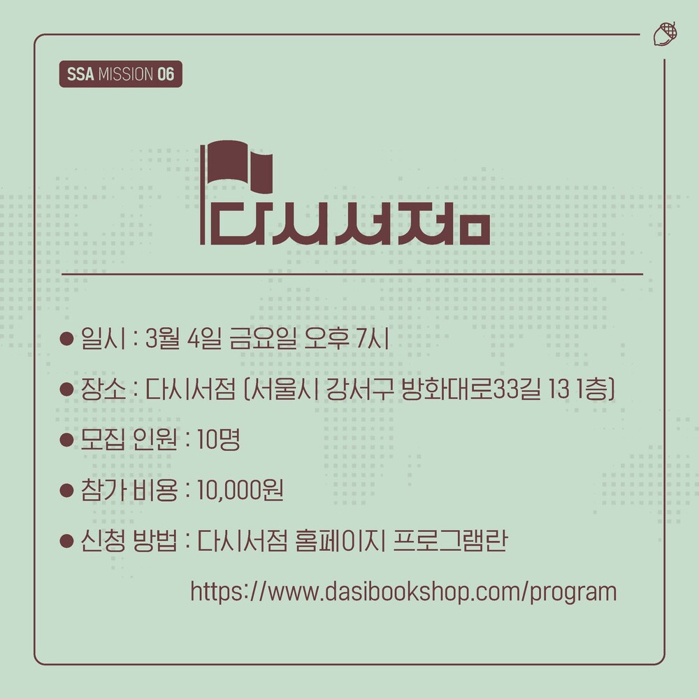 - 장소 : 다시서점 (서울시 강서구 방화대로33길 13 1층)