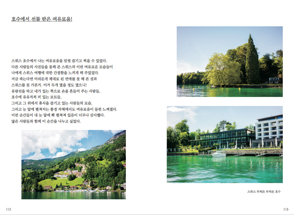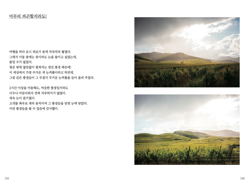 그렇기에 여행을 주제로 하고 제가 직접 찍은 사진들로 구성된 이 책은 저의 꿈을 가장 잘 실현시켜 줄 수 있는 매개체가 될 거 같았습니다.