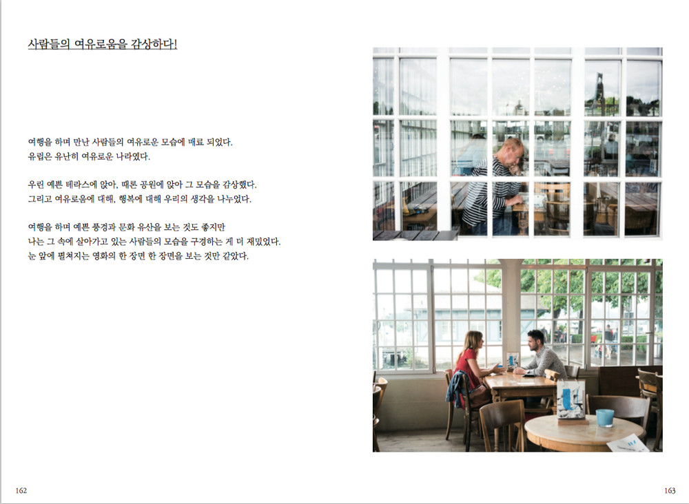 결론적으로 이 책은 이렇게 제가 미국 서부와 유럽(스위스, 독일, 프랑스, 이탈리아)을 여행하며 찾고 느낀 행복들을 사진가라는 제 직업을 살려