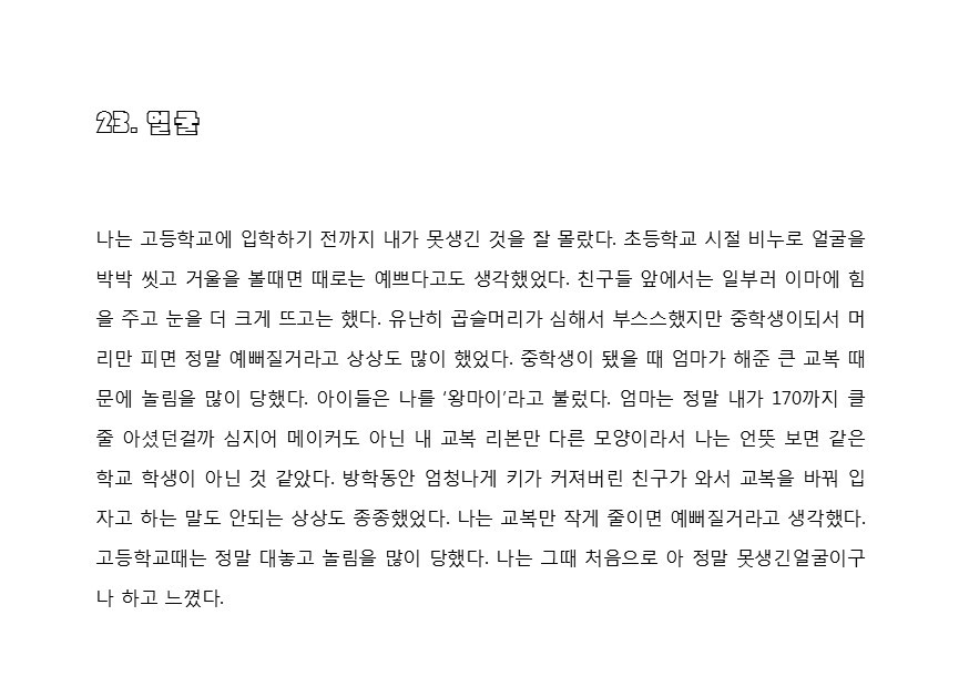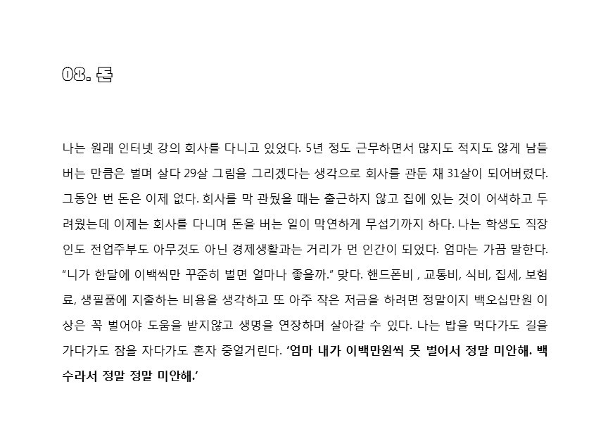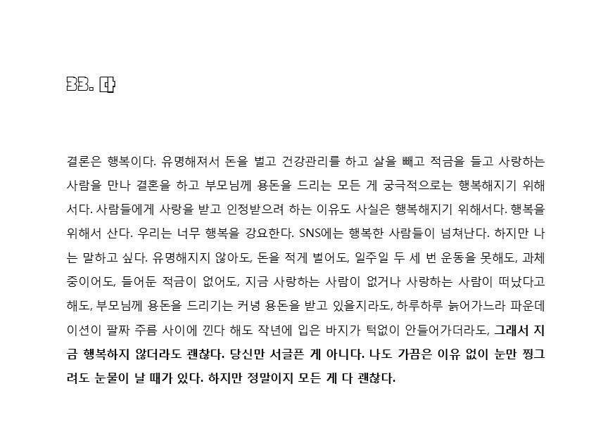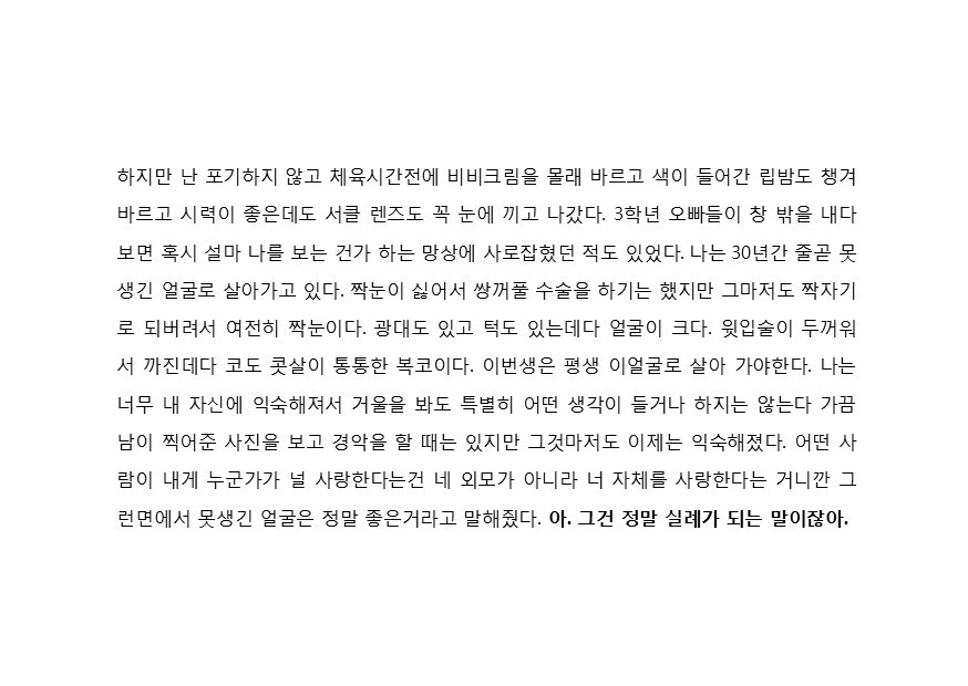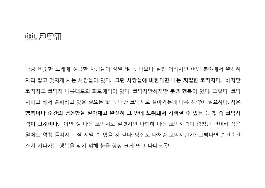 '놀랄만큼 조금도 빠지지 않는 살 5만원정도 있을 줄 알았던 통장잔고를 확인해보니 260원 ... 우리는 하루에도 크고 작은 수많은 고민과 걱정을 합니다 하지만 그 수많은 고민과 걱정도 먼 우주에서 바라보면 바라보면 작은 점일 뿐이겠지요. 때로는 영원히 해결되지않을 것 같은 큰 일도 작은 티끌로바라볼 필요가 있습니다. 저는 작은 점으로 세상을 그리는 31살 사람입니다.'