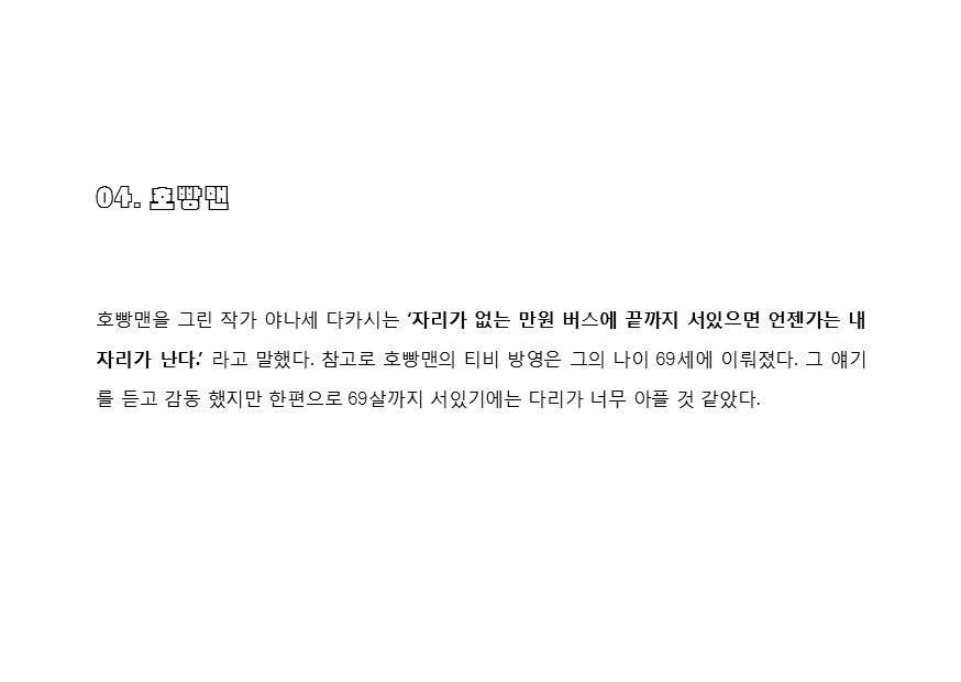 00. 코딱지 01. 치킨 02. 말 03. 배 04. 호빵맨 05. 나이 06. 아슬아슬 공포증 07. 홍당무 08. 돈 09. 낯선 사람 10. 증명 11. 기대 12. 오해 13. 시간 14. 마라 15. 성공 16. 남자 17. 이유 18. 이상 19. 더 20. 미워할 수 없는 인간 21. 타조 22. 계란 23. 얼굴 24. 컴퓨터 25. 전제 26. DNA 27. 감상 28. 두통 29. 잘해 30. 더위 사냥 31. 글 32. 프로 33. 결론