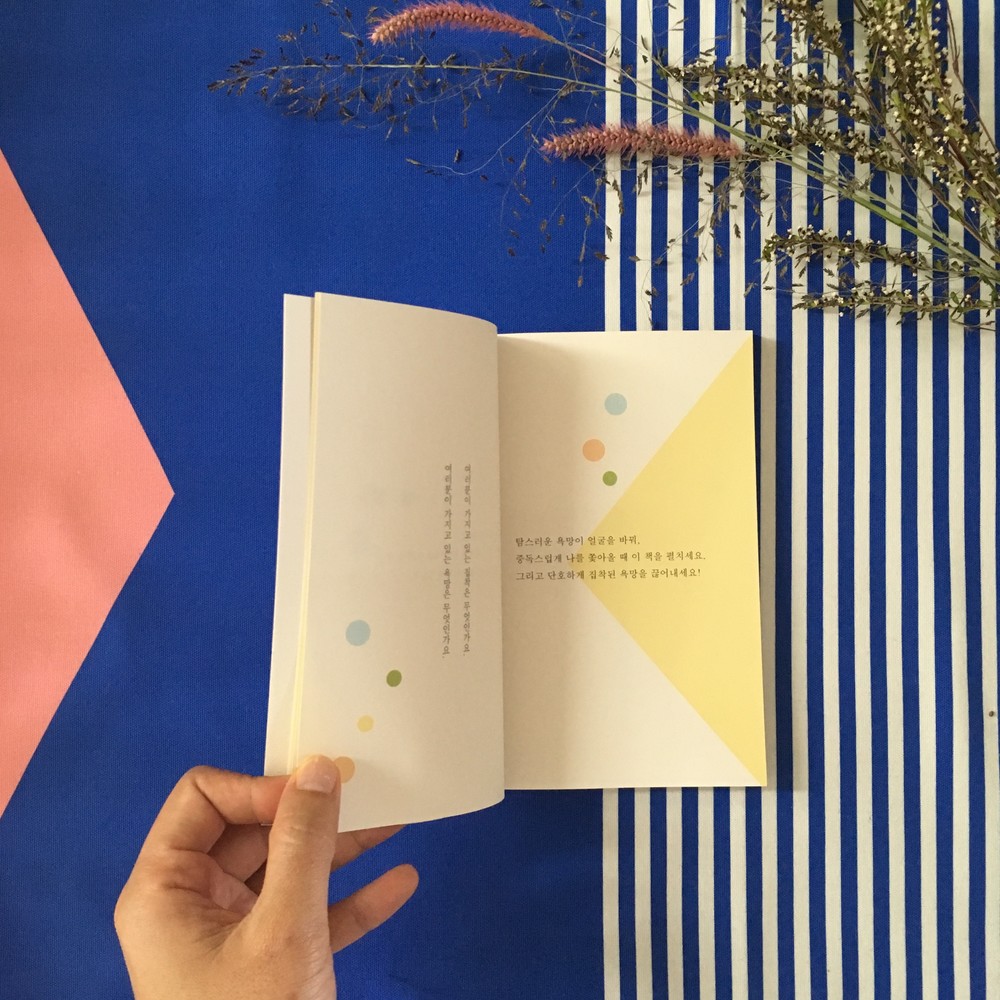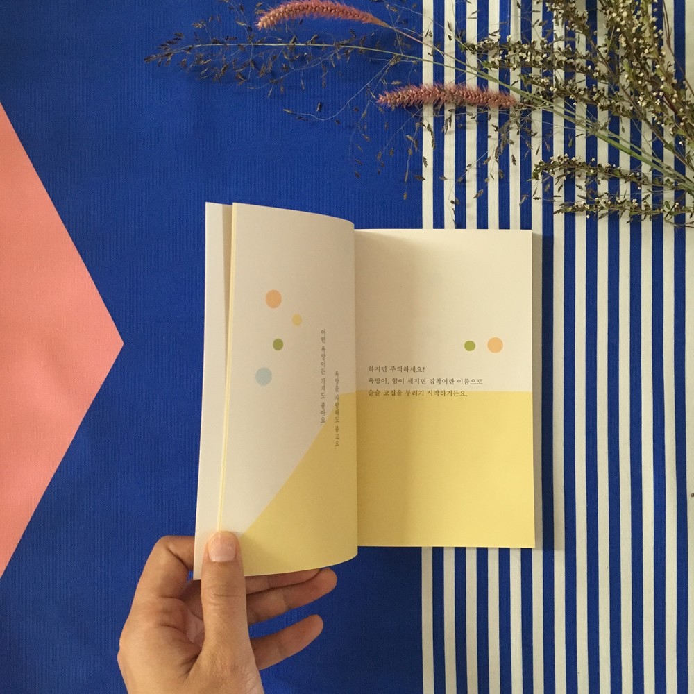 괜찮아요. 어떤 욕망이든 가져도 좋아요. 욕망을 사랑해도 좋고요. 하지만 주의하세요! 욕망이 힘이 세지면 집착이란 이름으로 슬슬 고집을 부리기 시작하거든요. 여러분이 가지고 있는 욕망은 무엇인가요? 여러분이 가지고 있는 집착은 무엇인가요? 탐스러운 욕망이 얼굴을 바꿔 중독스럽게 나를 쫓아올 때 이 책을 펼치세요. (책 내용 중)