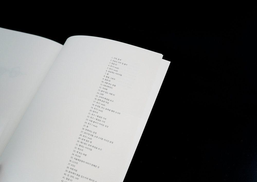 “이 드로잉들은 아주 짧은 순간 떠오르는 심상들을 기록한 선으로, 매일 그어졌습니다. 본격적인 작업으로 들어가기 전, 머릿속을 비우고 몰입된 상태를 유지하기 위한 심호흡 같은 행위의 결과물입니다.