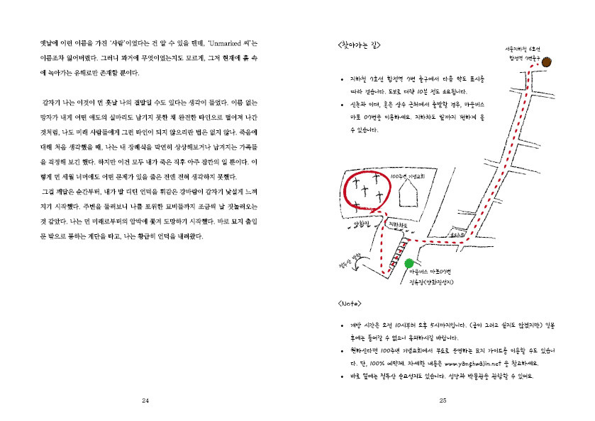탐방 장소 중에는 제 과거 기억과 어떤 접점이 있는 평범한 묘지도 있고, 특별한 사연을 담은 소문을 따라 처음 가 보게 된 곳도 있지요.