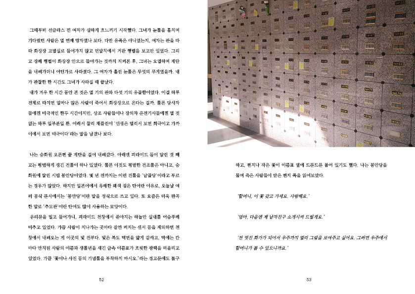 <사망견문록>은 여러 죽음의 장소 사이를 걸어다니며 떠오른 생각을 모은 '죽음 탐방기'입니다.