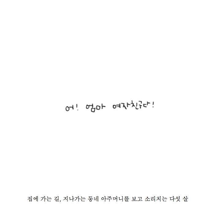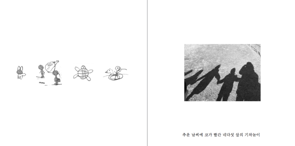 _ 소개글 : 우연한 기회에 네다섯 살 아이들과 지난 겨울을 보냈습니다. 결코 특별하지도, 어디 하나 화려한 수식어도 없지만 아이들은 하루에도 몇 번씩 아무렇지 않게 작은 말과 흔한 단어로 선생님을 뭉클하게 그리고 웃게 했죠. 무릎을 탁 치게하거나 귀여움에 몸서리치게 만든 아이들의 말을 모았어요. 어쩌면 우리 모두의 말이었을 이토록 간결하고 귀여운 말들입니다.