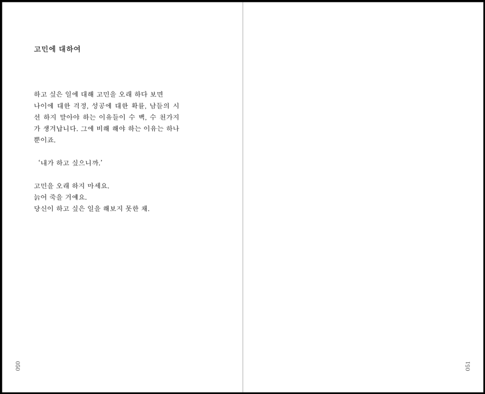 어쩌면 이 책과 같이 서툴고 투박한 미완의 그래서 한 청년의 삶을 또 완벽하게 전달하는 완성도 있는 책은 없을지도 모른다.