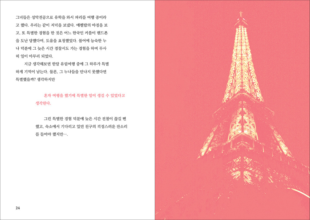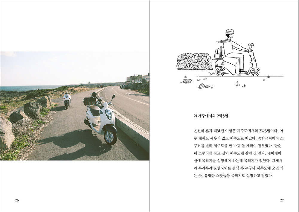 “혼자 누구의 눈치도 보지 않고 계획도 없이 떠난 여행에는 별 기대감이 없으면서도 여러 상황을 마주하게 되면서 계획이 세워진다. 그리고 돌아보면 그 계획은 완벽했다. 계획을 세우고 떠났더라면 접하지 못했을 것들이었다. 이것은 어찌 보면 내 인생과도 비슷하다는 생각을 한다.” -2. 혼자 여행하기 중에서
