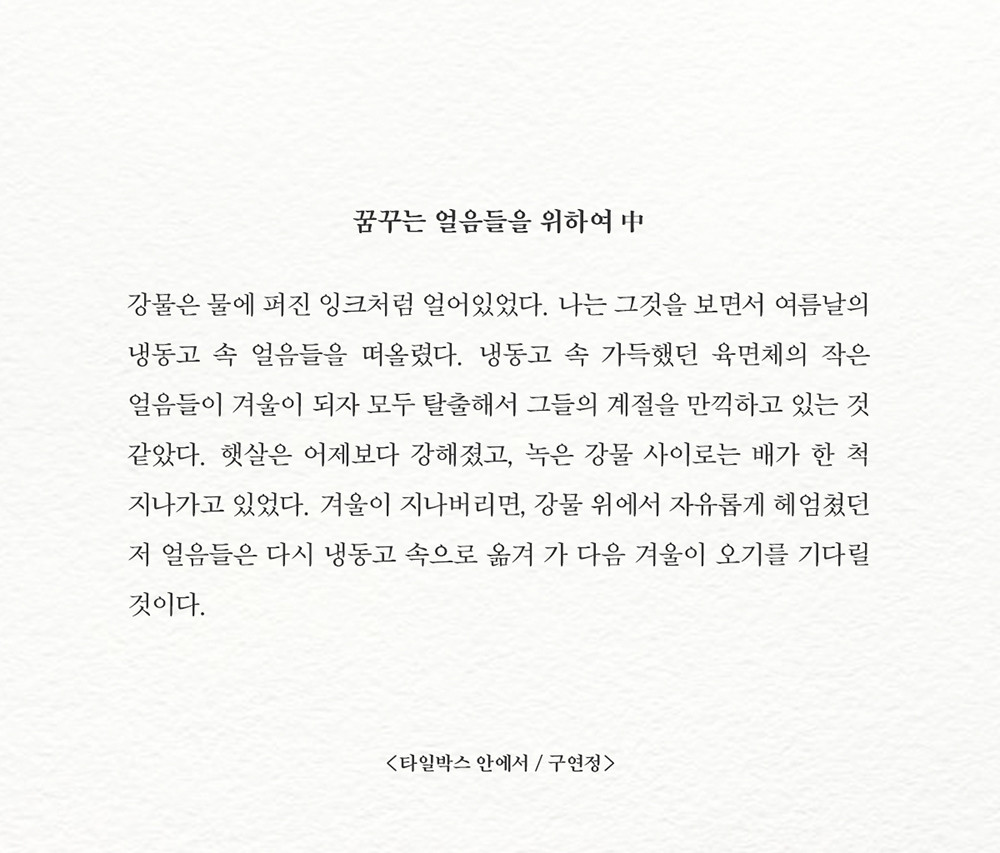 나는 내 글이 따뜻한 물줄기 속에서 눈이 감기듯이 읽혔으면 좋겠다.