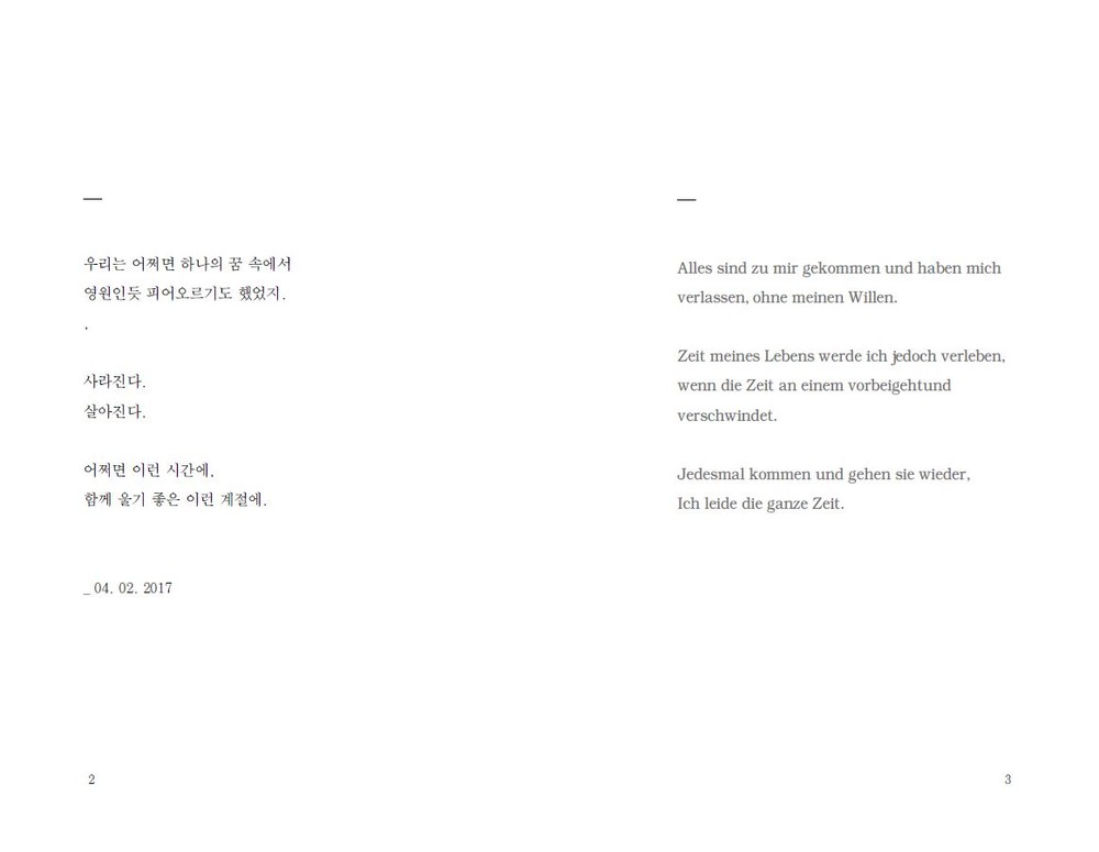 사라지고 살아질 수 밖에 없는 삶, 그리고 그 모든 꿈틀거 림. 저는 지치는 현실에서 돌아와 매일 산책을 하며 자연 속에서 위안을 받곤 했습니다. 그리고 짧게 스치는 단상을. 그들의 언어를 썼습니다.