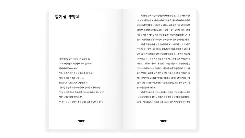 이 밖에 우리 사회를 조금 특이한 상상력으로 바라본 28개의 반항적이고 풍자적인 초단편 이야기들을 지나 책은 [집단생존본능] 에 대한 수업으로 마무리된다.