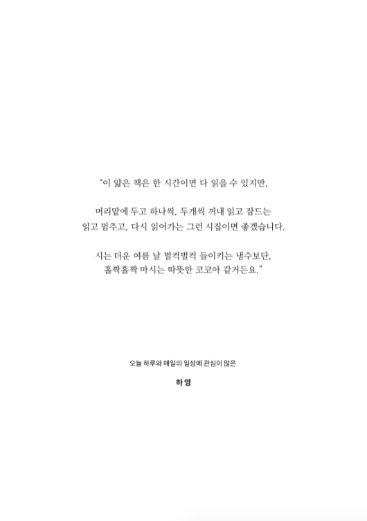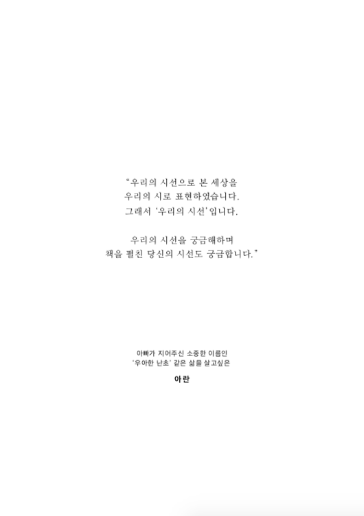 "닮은 듯 다른 우리가 각자 품고 있던 시들을 세상에 꺼내게 되었습니다."