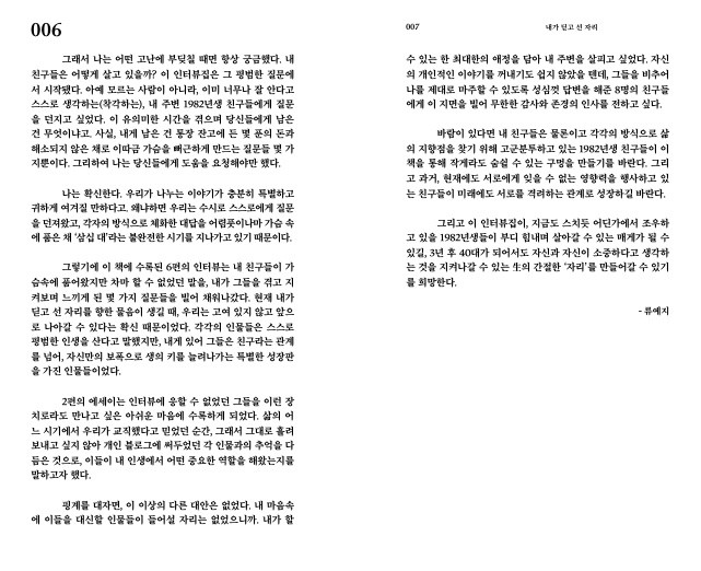 제목 : 내가 딛고 선 자리(Questions for life)_8명의 1982년 生을 만나다