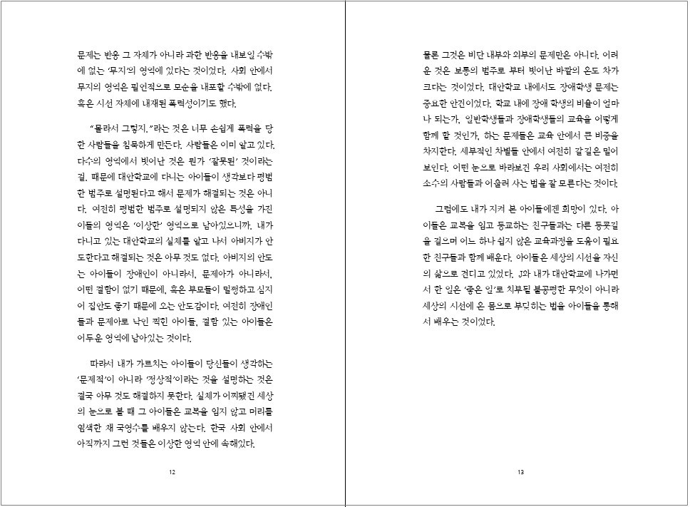 또한 그와 같은 논리를 세상의 이치로 학습하는 아이들의 모습은 꽤나 불편하게 다가왔습니다.