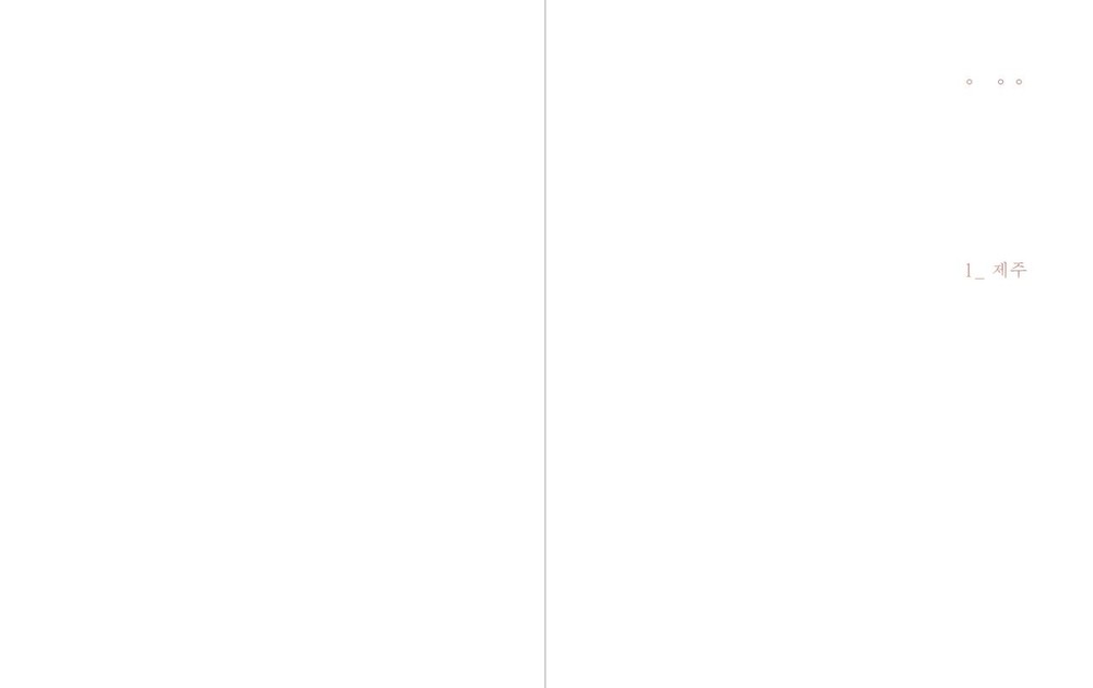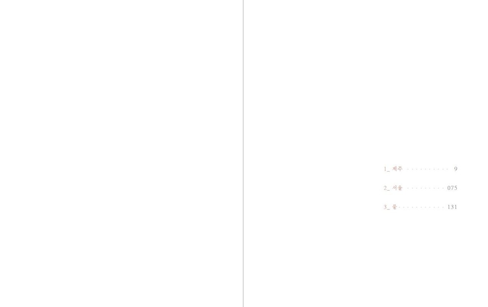 1. 제주 1-1. 점은 그냥 지나쳐지지 않는다 1-2. 23 (동화 1-2) 1-3. 기생하는 것 1-4. 안녕바다 (동화 3-5) 1-5. 단 한 명의 밤에 1-6. 네가 내게 준 것을 1-7. 제주의 거북이 알 1-8. 제주에서 서울로 (동화 6-7)