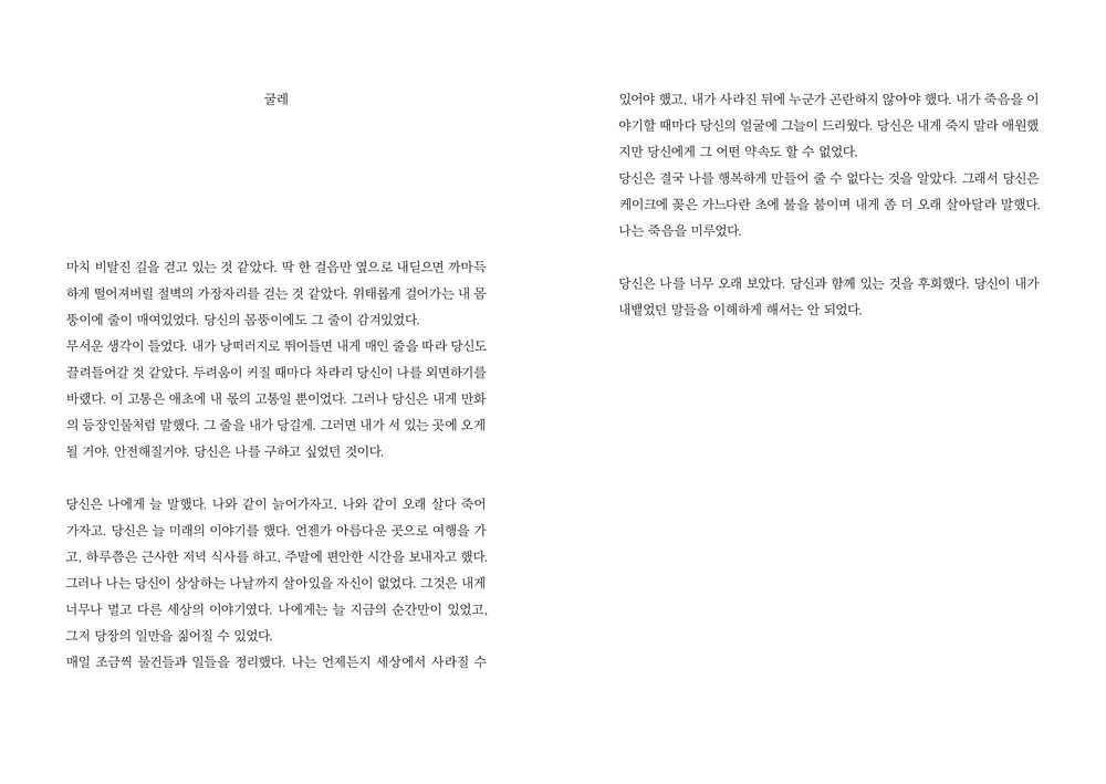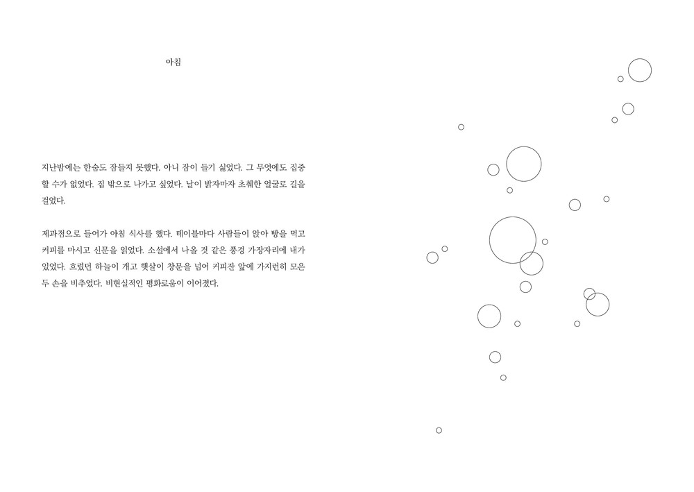 제목 : 장밋빛 거품 저자 : 지아(Jia) - 책 소개 : 「낡고 바랜 길마다 해가 비쳤다. 어디나 눈이 부셨다. 구름 한 조각 없는 하늘이 었다. 그 많던 사람들은 모두 멀리 떠나버린 것 같았다. 골목마다 나무들이 그늘을 드리우고 있었다. 오래된 집에는 장미가 피었다. 늦은 봄에 피어난 장미는 여름의 문턱에서 시들어 버렸다.」 - 본문 중에서. 너무나 눈부시고 괴로웠던 여름에 써 내려간 짧은 소설입니다. -판매가격 : 5000원 사이즈 : 148 X 210 mm 페이지 : 표지 제외 28p