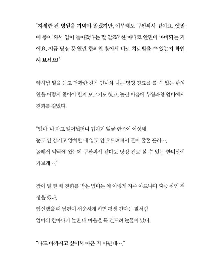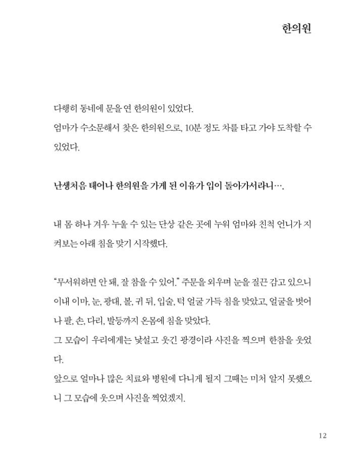 그래서 이 책이 희망의 메시지를 전하거나, 좋은 병원들을 추천하는 추천서와의 성격과는 조금 다르지만, 제가 조금은 다른 결론의 책을 냄으로써 여전히 아픈 모든이들에게 용기와 위로를 전하고 싶습니다.