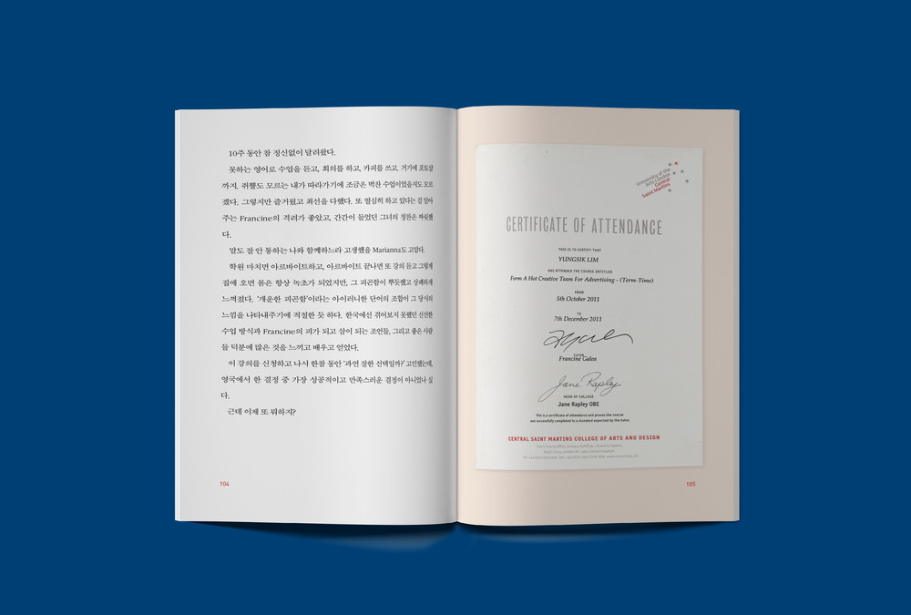 5년 차 광고기획자인 필자가 ‘광고인’이 되기까지 가장 큰 영향을 끼친 경험으로 주저 없이 ‘10개월간의 런던 생활’을 꼽는다. 필자도 처음에는 영어 공부를 위해 어학연수를 갔다. 그러나 런던 생활이 익숙해져 갈 때쯤 그곳에서만 할 수 있는 색다른 경험을 해보기로 다짐했고, 고민 끝에 ‘런던의 광고인을 만나보자’라는 다소 대책없어 보이는 목표를 세웠다. 4개월간 포트폴리오를 제작한 후 한 달 동안 런던 광고회사 10곳을 방문했다. 무작정 회사 앞에서 2시간 가까이 추위에 떨기도 하고, 안내 직원에게 쫓겨나기도 하면서 15명의 런던 광고인을 만났다. 이 모든 과정과 그것을 계기로 겪었던 새로운 경험을 글로 풀었다.