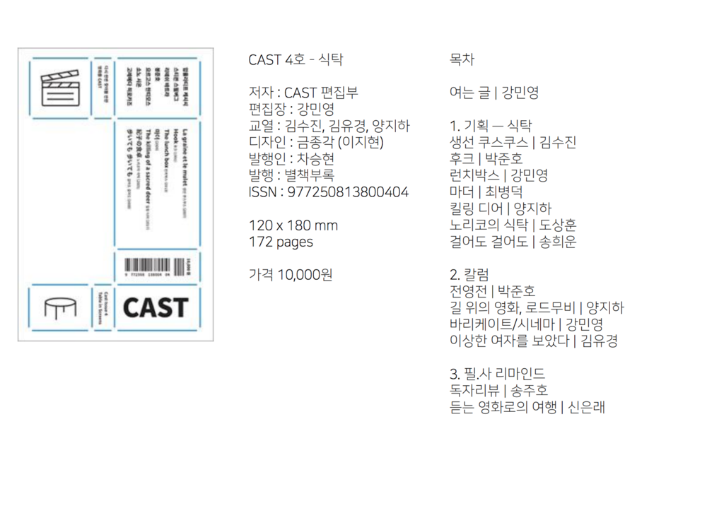 2007년 3월 창간해 약 9년 동안 많은 영화 애호가들에게 읽혔던 독립출판물 <필름에 관한 짧은 사랑>이 <CAST>의 전신으로,